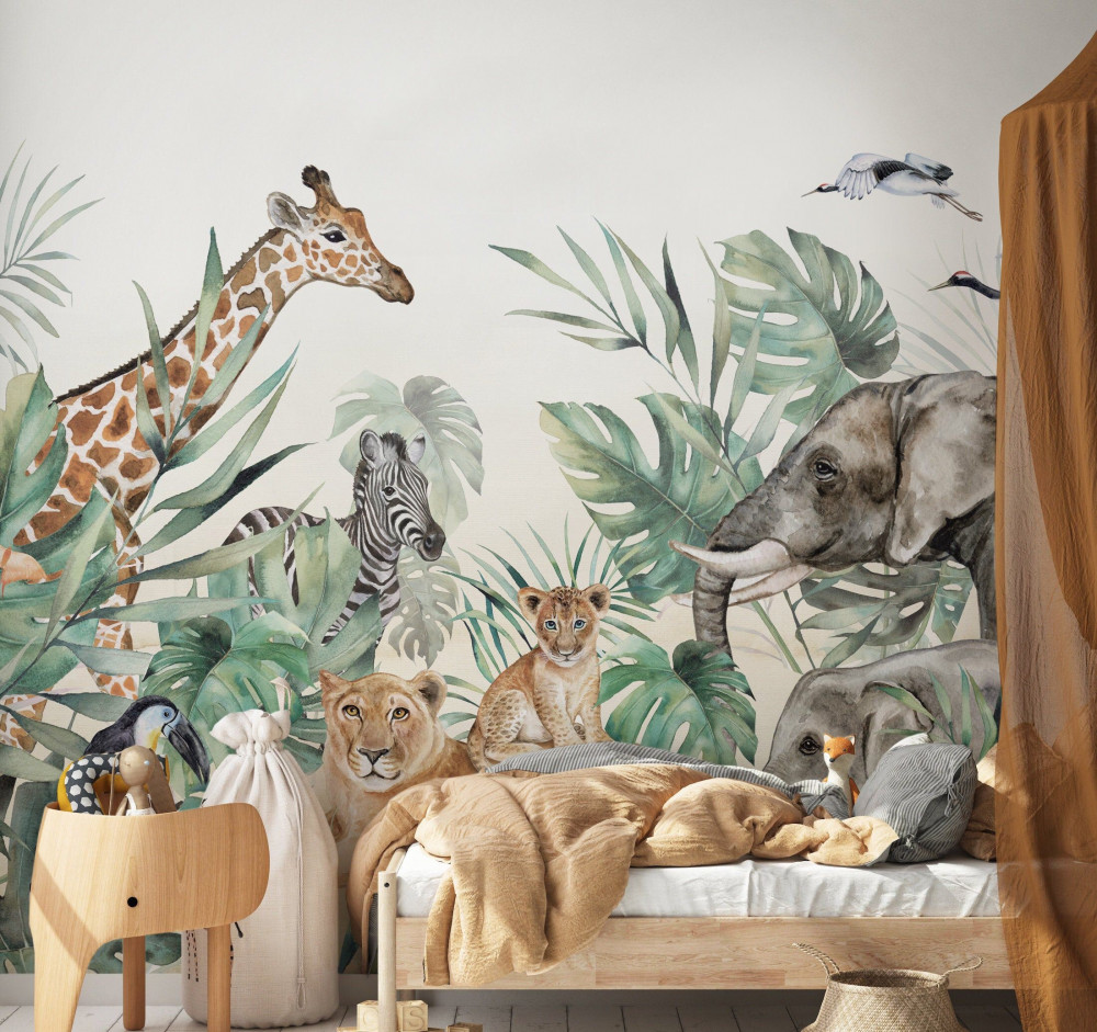 Tapeta Fototapeta zwierzęta wśród liści (artykuł a94636 ) z kategorii Fototapety 3D