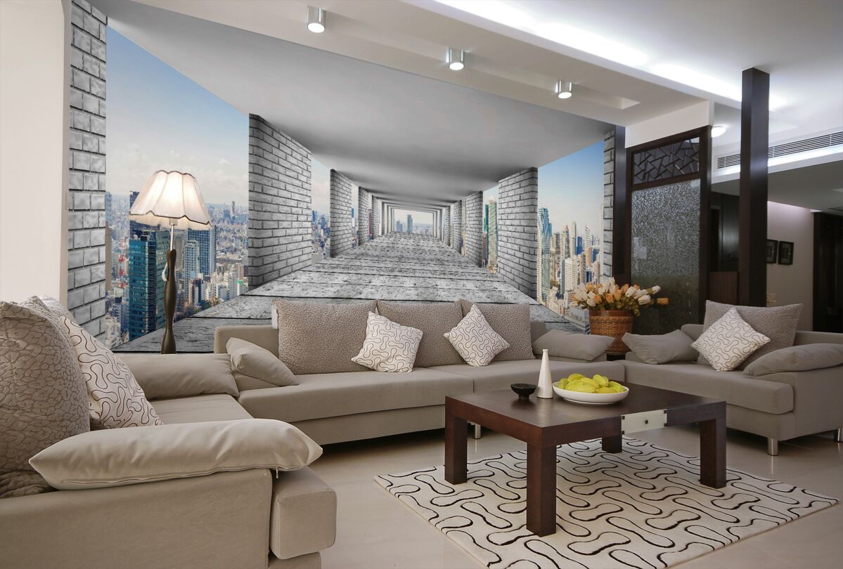 Tapeta Fototapeta tunel z widokiem na miasto (artykuł a94825 ) z kategorii Fototapety 3D