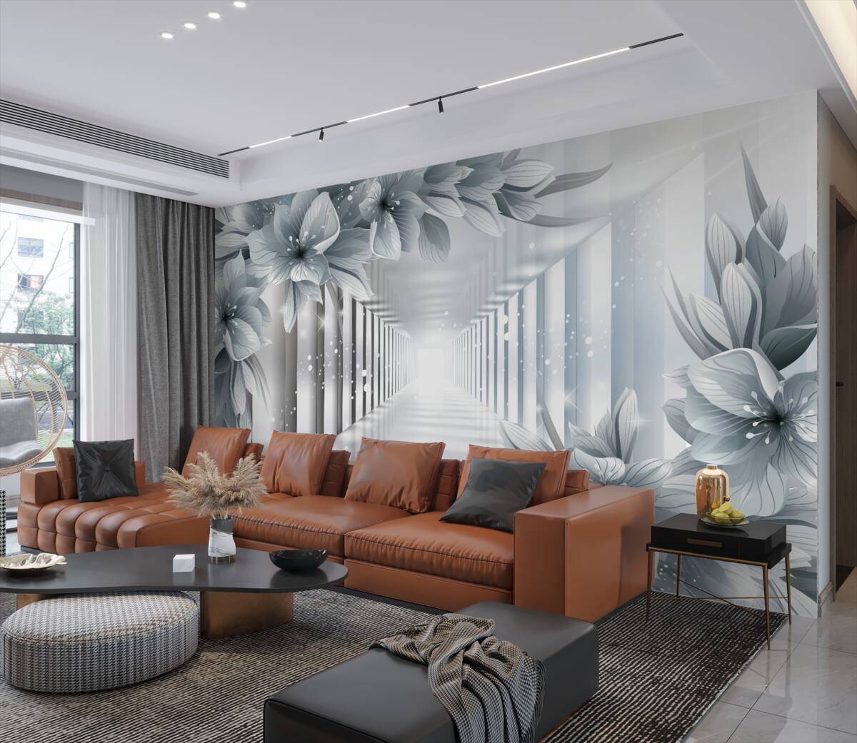 Tapeta Fototapeta kwiaty i nieskończony tunel (artykuł a94810 ) z kategorii Fototapety 3D