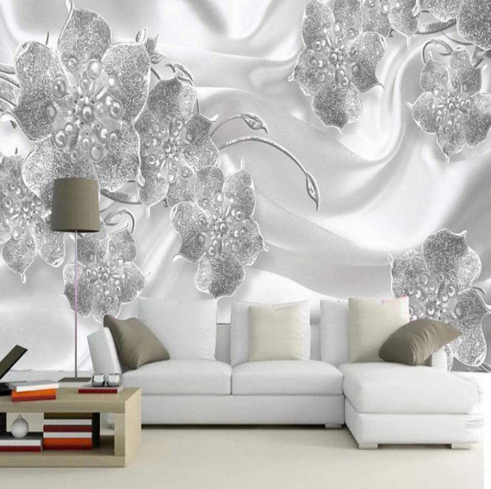 Tapeta Fototapeta srebrzyste kwiaty na jedwabiu (artykuł a94628 ) z kategorii Fototapety 3D