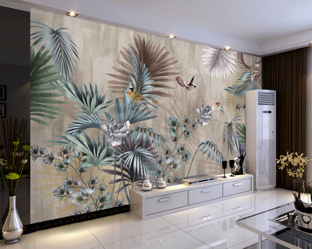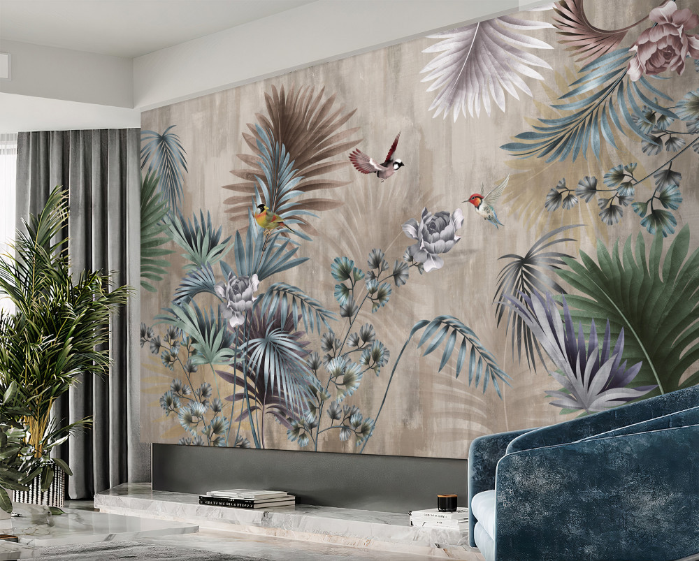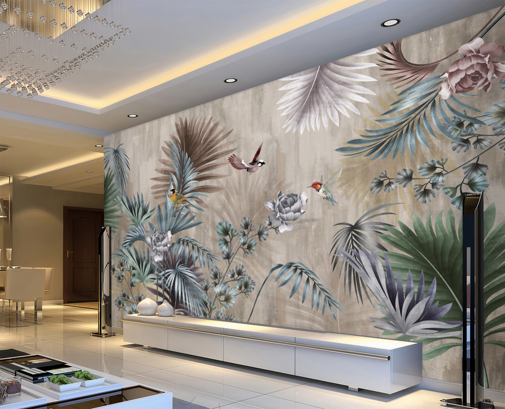 Tapeta Fototapeta ptaki i tropikalne liście (artykuł a94640 ) z kategorii Fototapety 3D