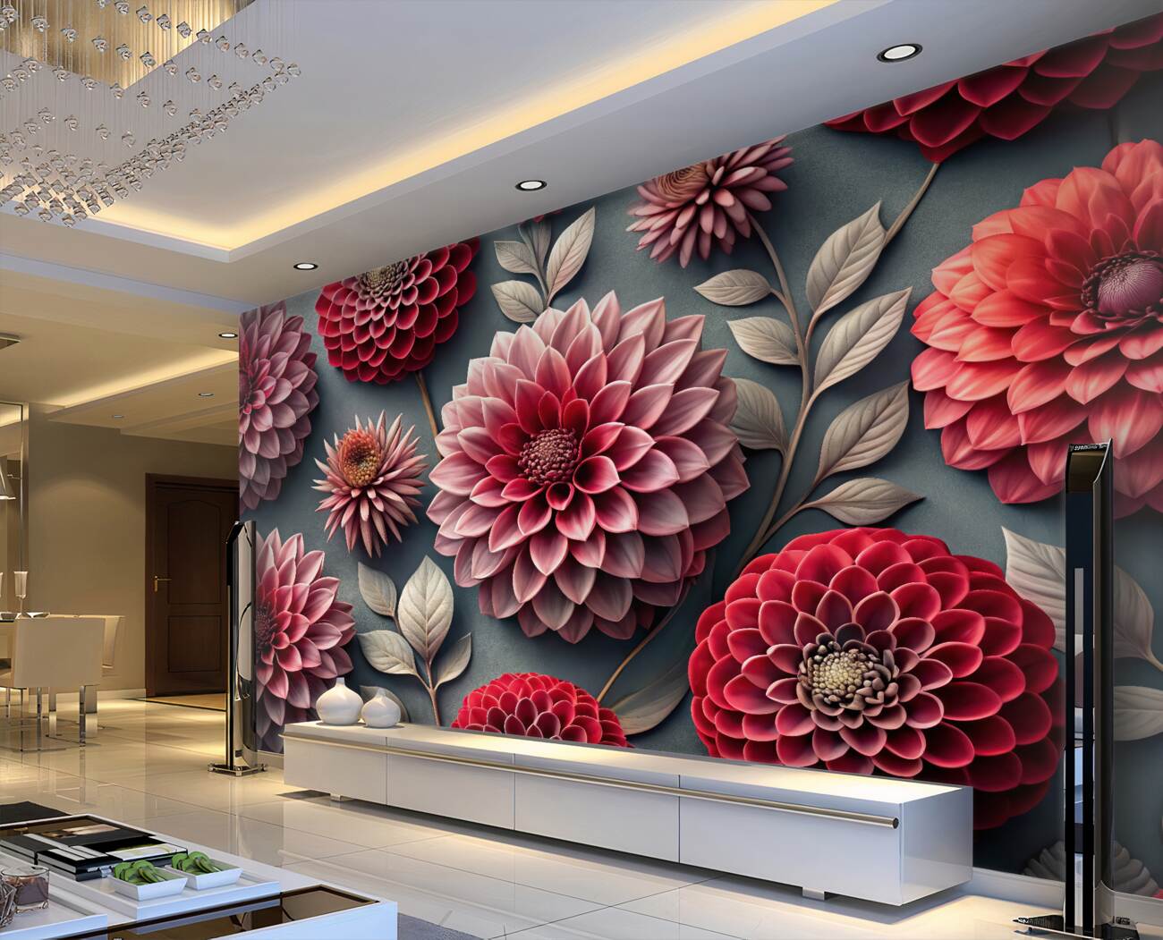 Tapeta Fototapeta 3D Asters czerwony i różowy (artykuł u10960 ) z kategorii Fototapety 3D