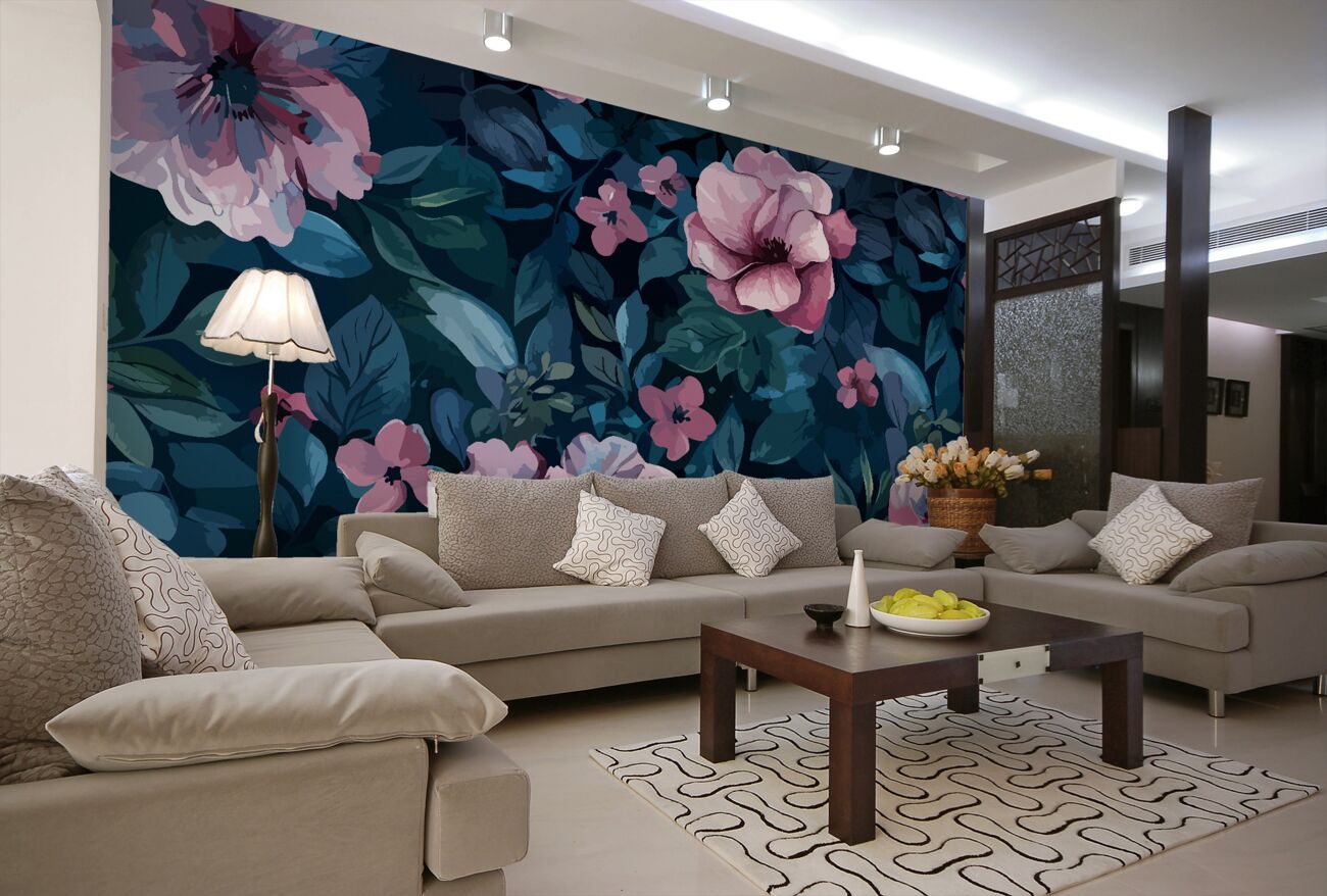 Tapeta Fototapeta Akwarela delikatne kwiaty w nocy (artykuł u10791 ) z kategorii Fototapety 3D