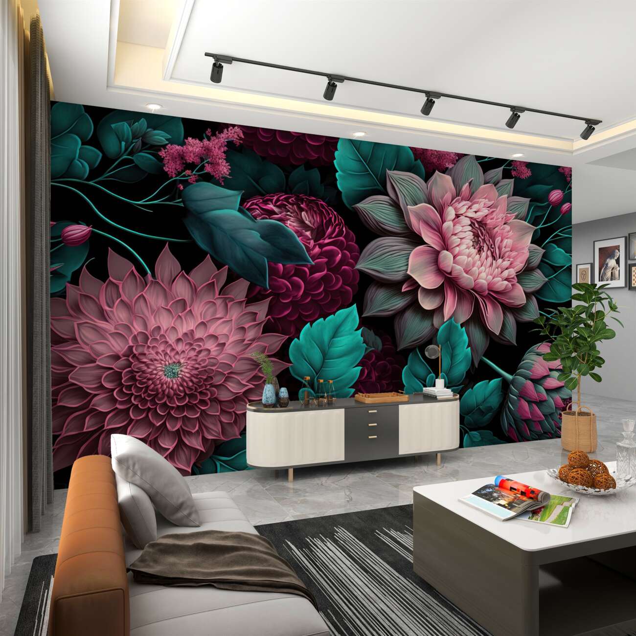 Tapeta Fototapeta Aster i piwonie w 3D (artykuł u11033 ) z kategorii Fototapety 3D