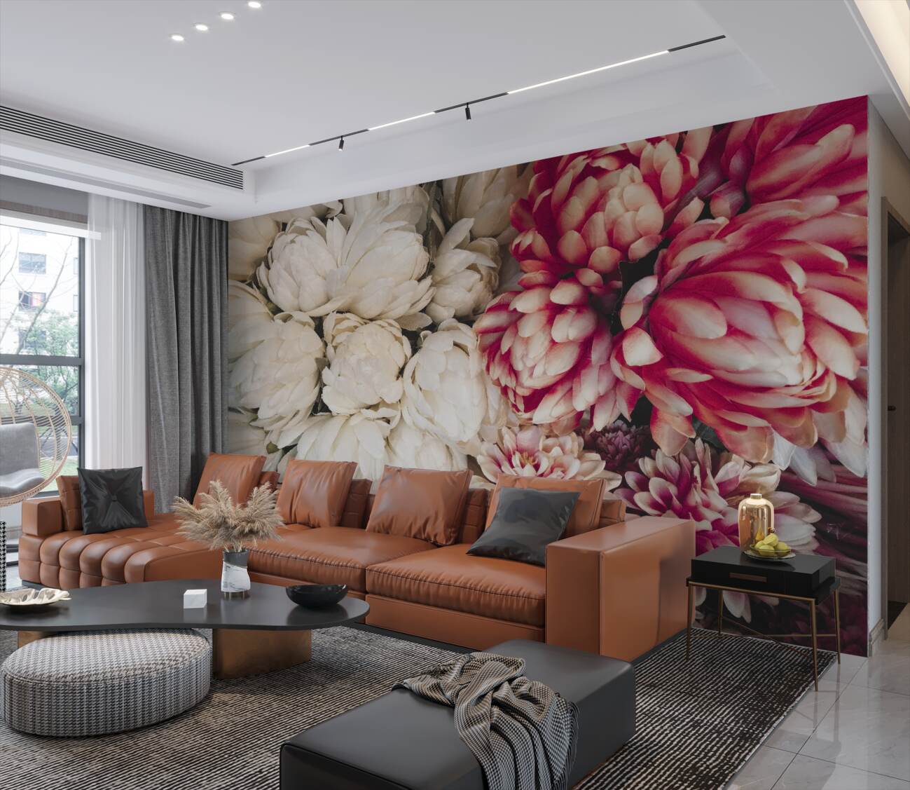 Tapeta Fototapeta Azby i piwonie kwiaty 3D (artykuł u10844 ) z kategorii Fototapety 3D