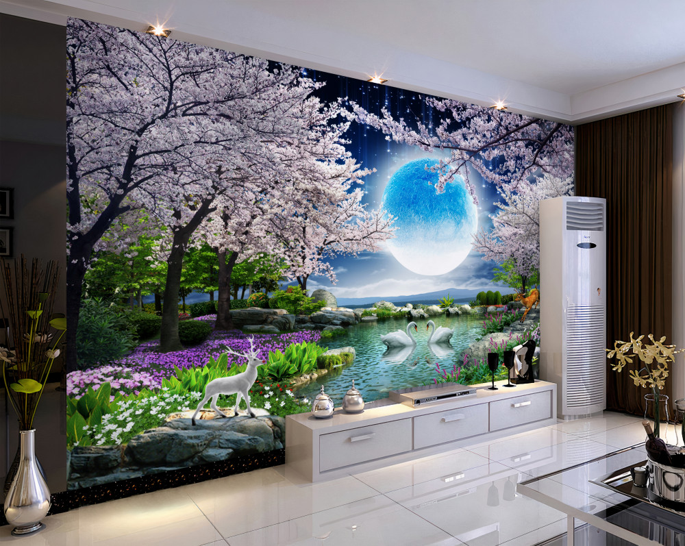 Tapeta Fototapeta bajkowy księżyc w kwitnącym ogrodzie sakura (artykuł a91099 ) z kategorii Fototapety 3D