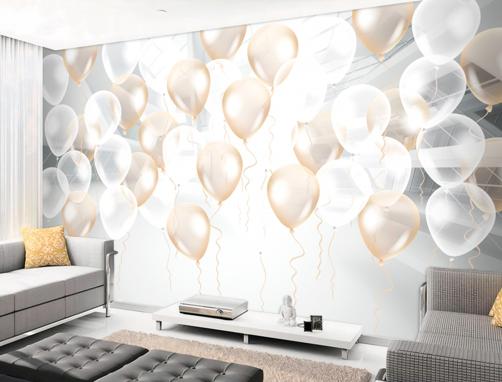 Tapeta Fototapeta balony biało-złote (artykuł a90123 ) z kategorii Fototapety 3D