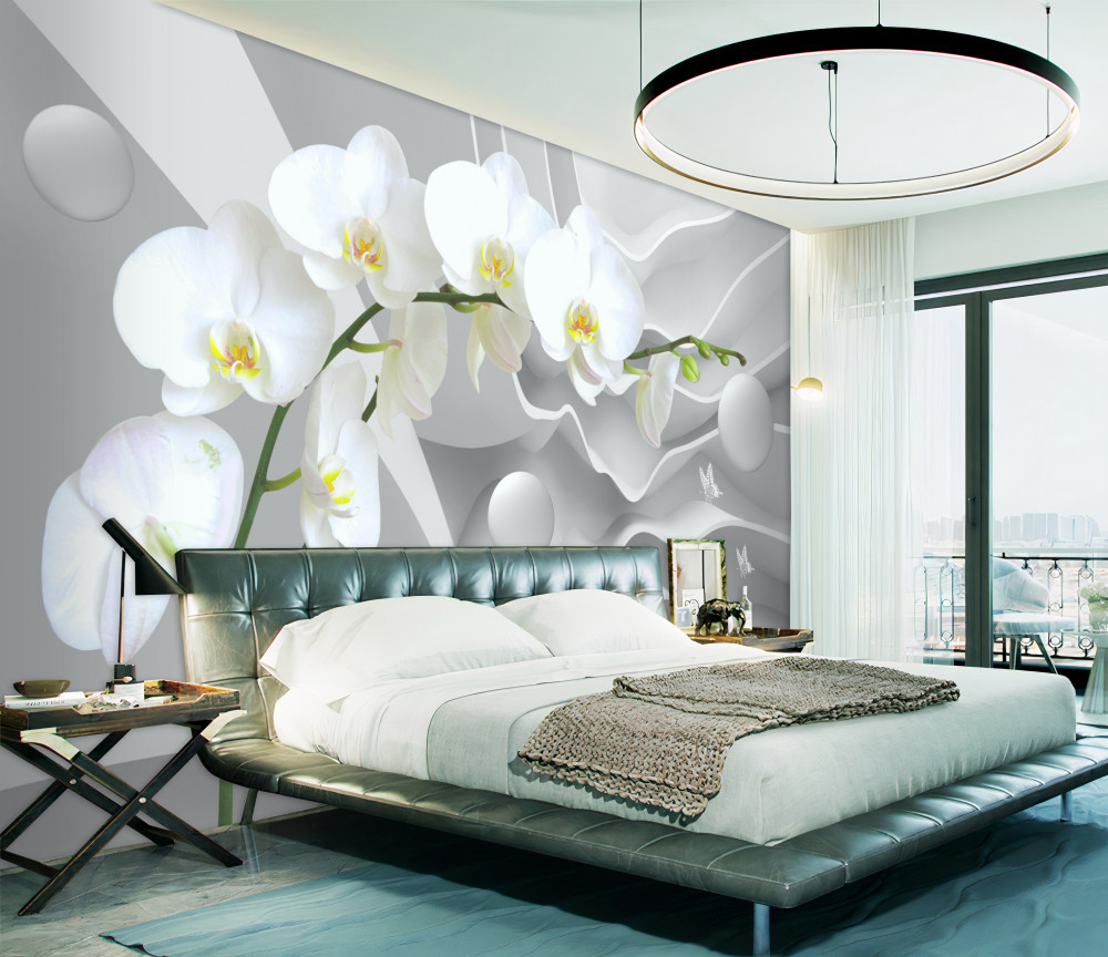Tapeta Fototapeta biała orchidea na szarym tle (artykuł a91201 ) z kategorii Fototapety 3D