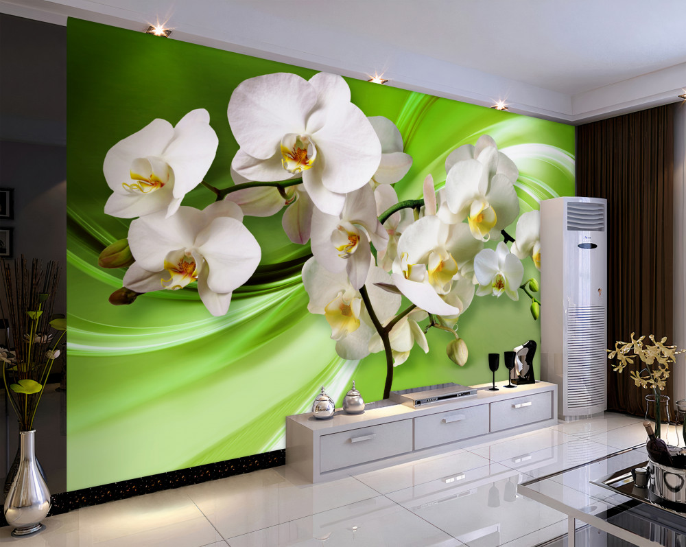 Tapeta Fototapeta biała orchidea na zielonym tle (artykuł a91319 ) z kategorii Fototapety 3D
