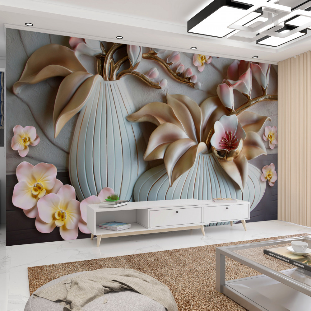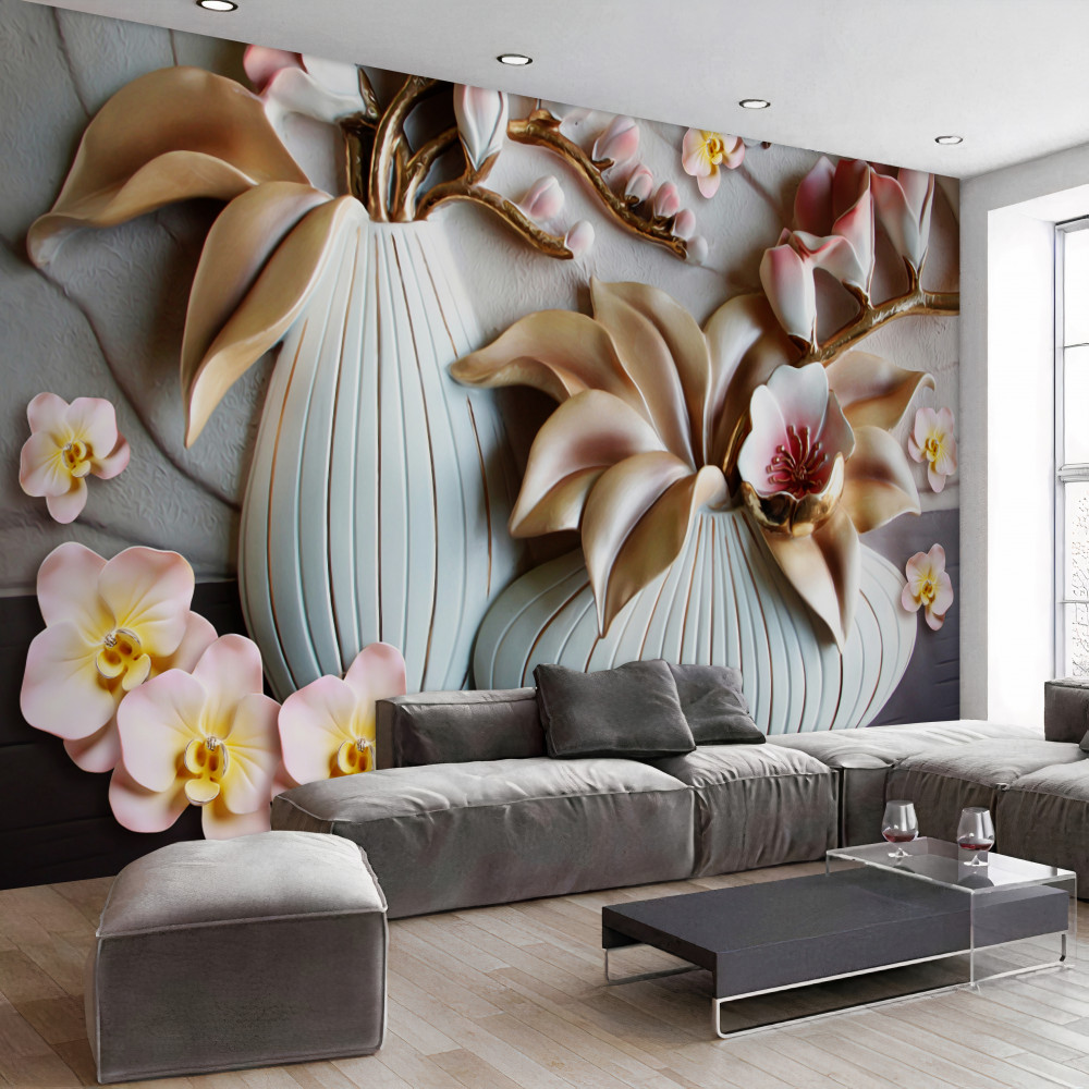 Tapeta Fototapeta biała orchidea w różnych wazonach (artykuł a89150 ) z kategorii Fototapety 3D