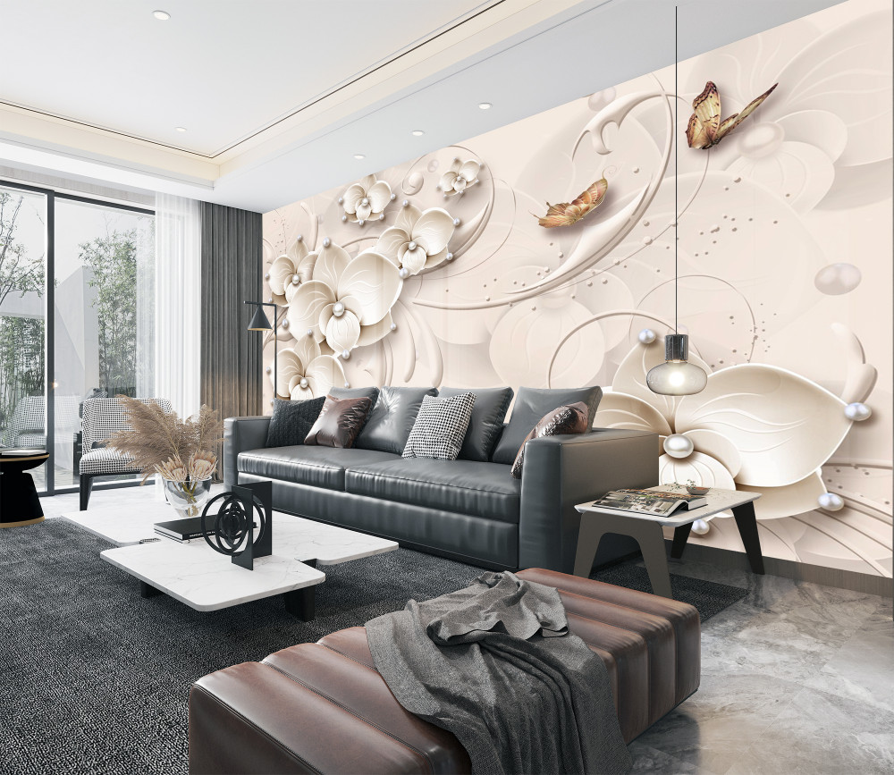 Tapeta Fototapeta białe gałęzie orchidei i motyl (artykuł a94194 ) z kategorii Fototapety 3D