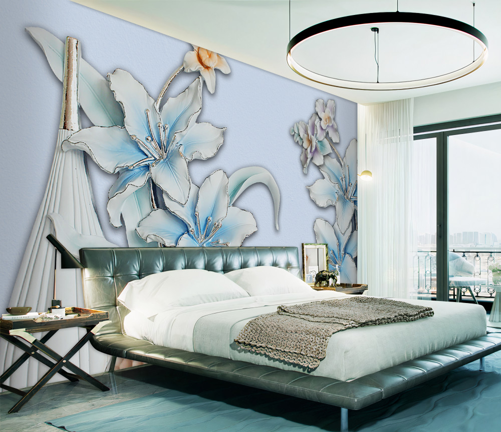 Tapeta Fototapeta białe i niebieskie lilie w bukiecie (artykuł pb6714 ) z kategorii Fototapety 3D