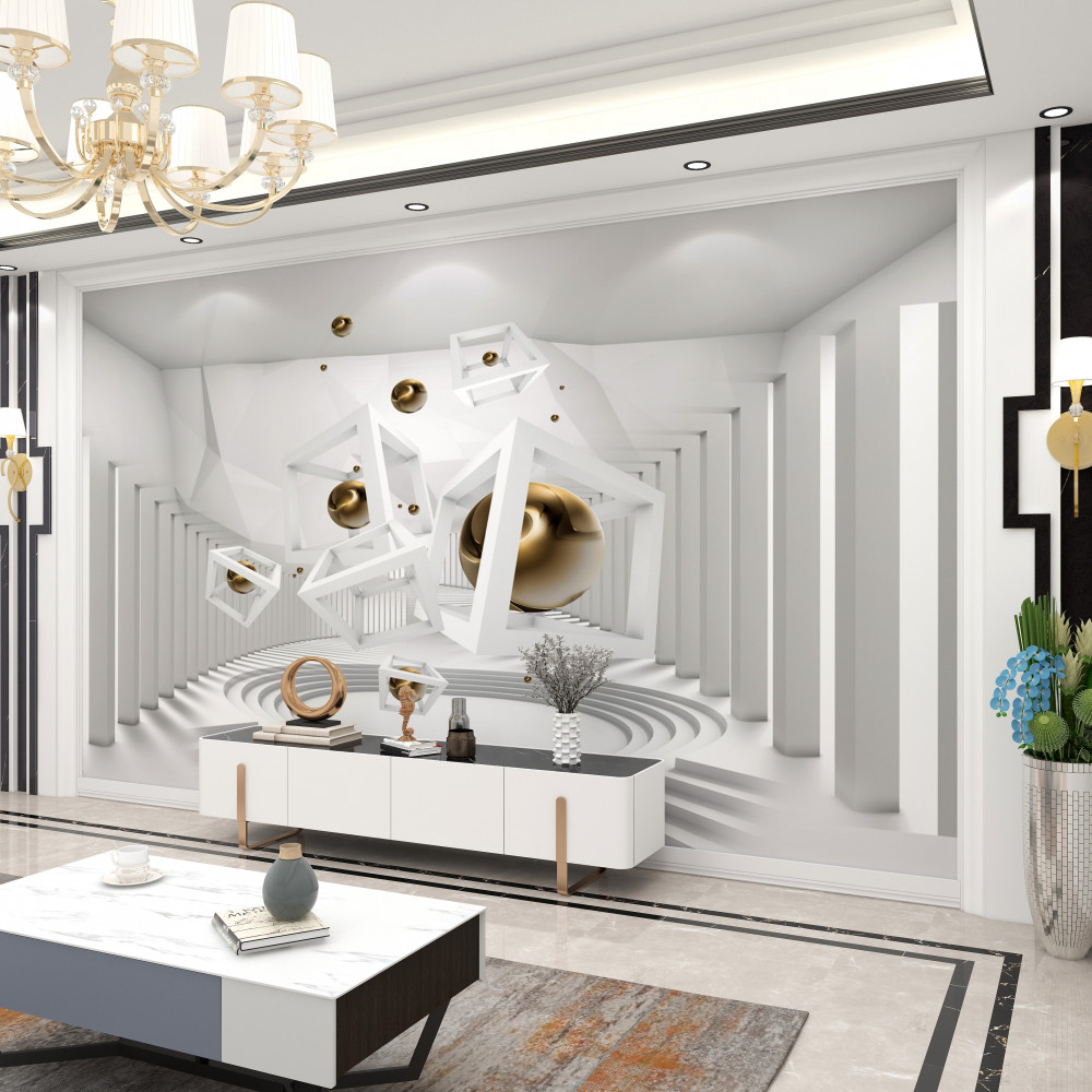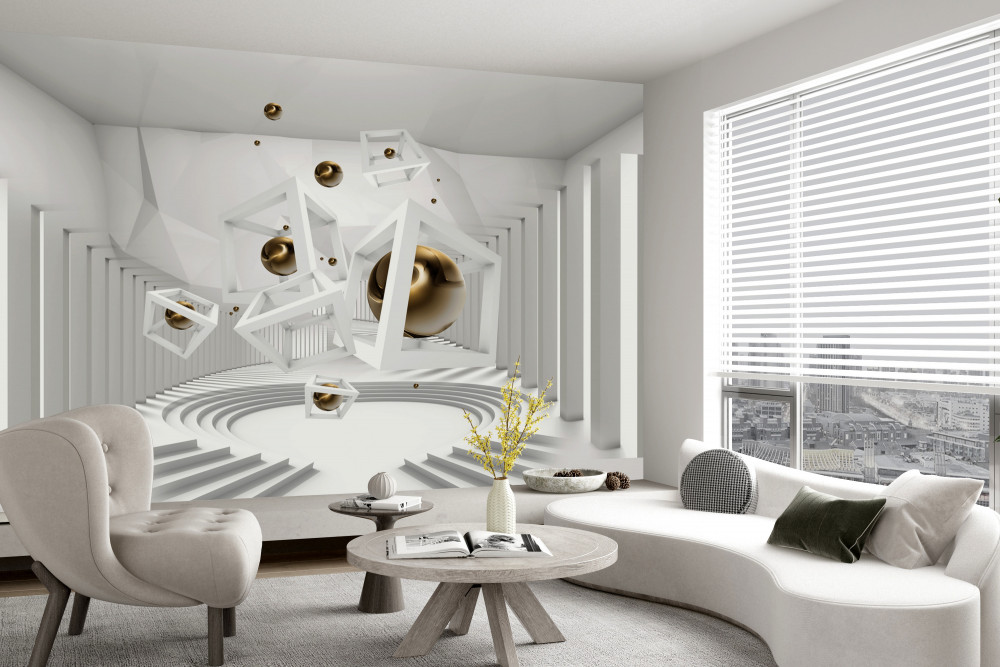 Tapeta Fototapeta białe kostki i złote kulki (artykuł a93674 ) z kategorii Fototapety 3D