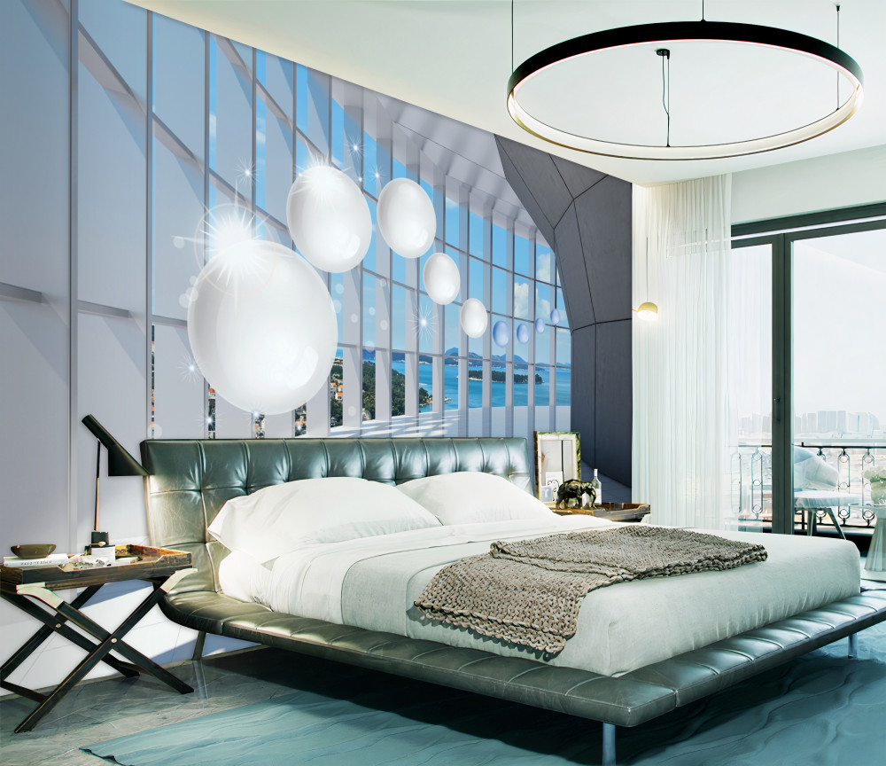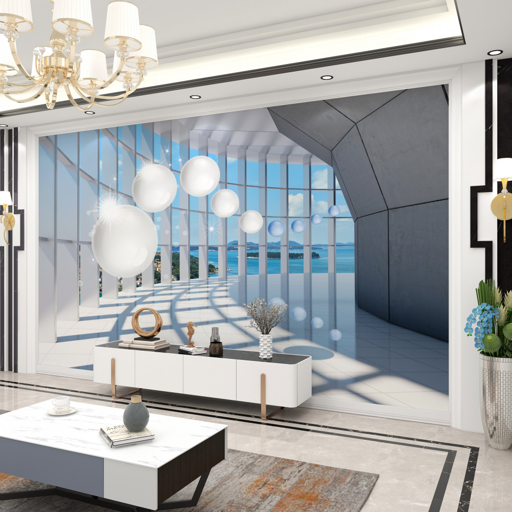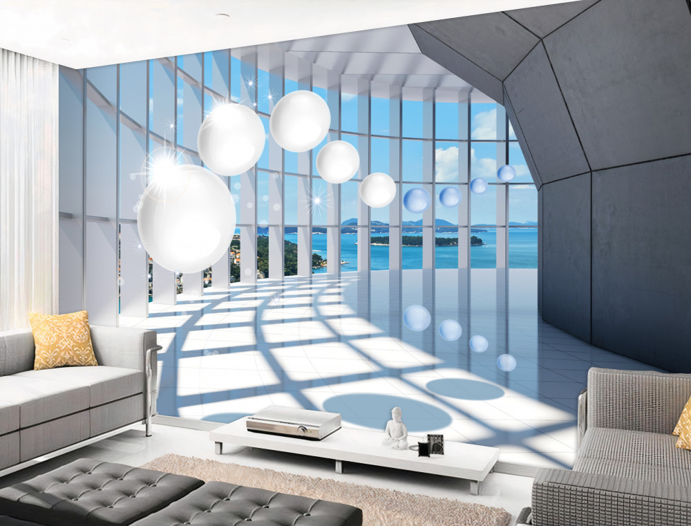 Tapeta Fototapeta białe kule latają w tunelu na niebie (artykuł a91293 ) z kategorii Fototapety 3D