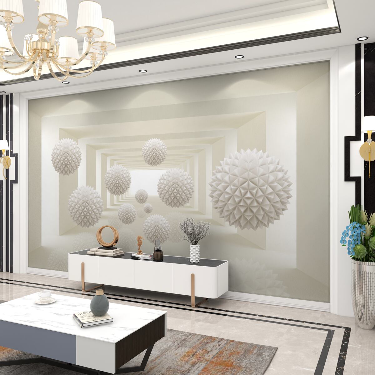 Tapeta Fototapeta białe kulki wolumetryczne (artykuł a97586 ) z kategorii Fototapety 3D