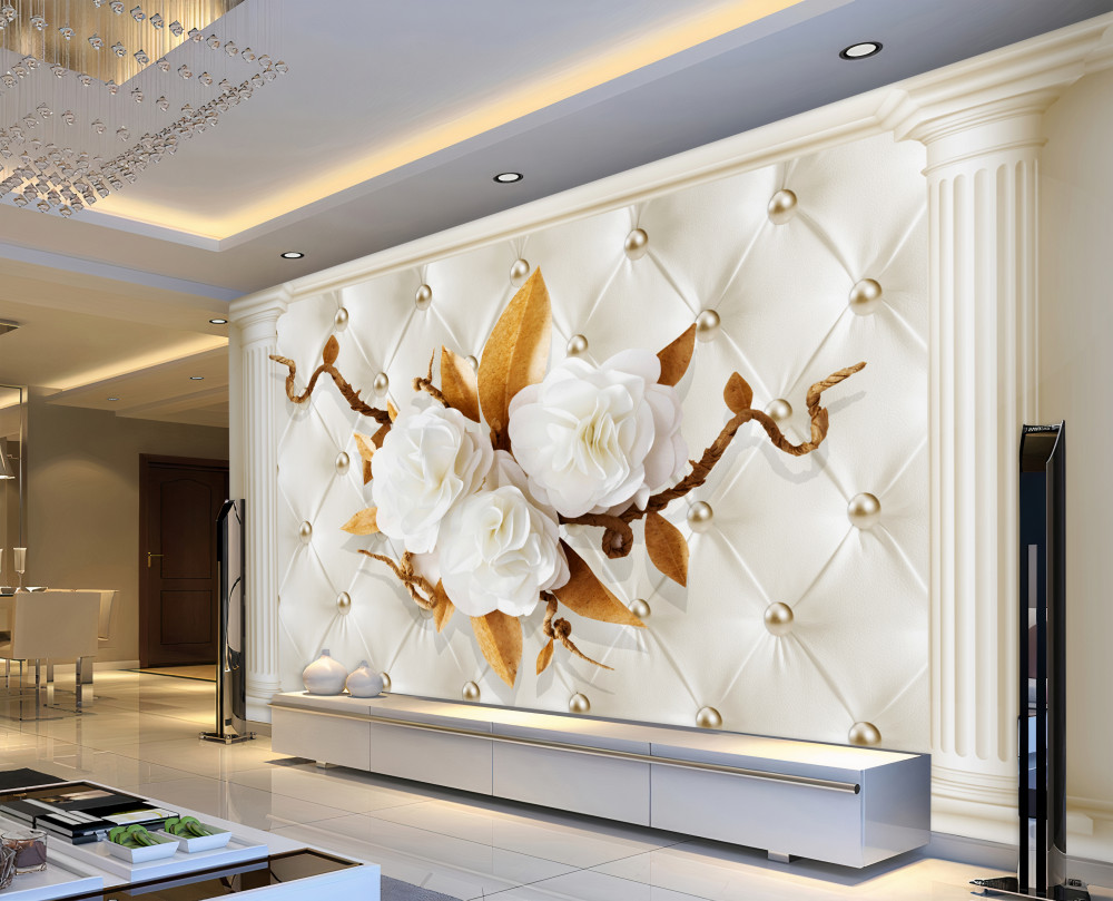 Tapeta Fototapeta białe kwiaty i złote gałązki (artykuł a90641 ) z kategorii Fototapety 3D
