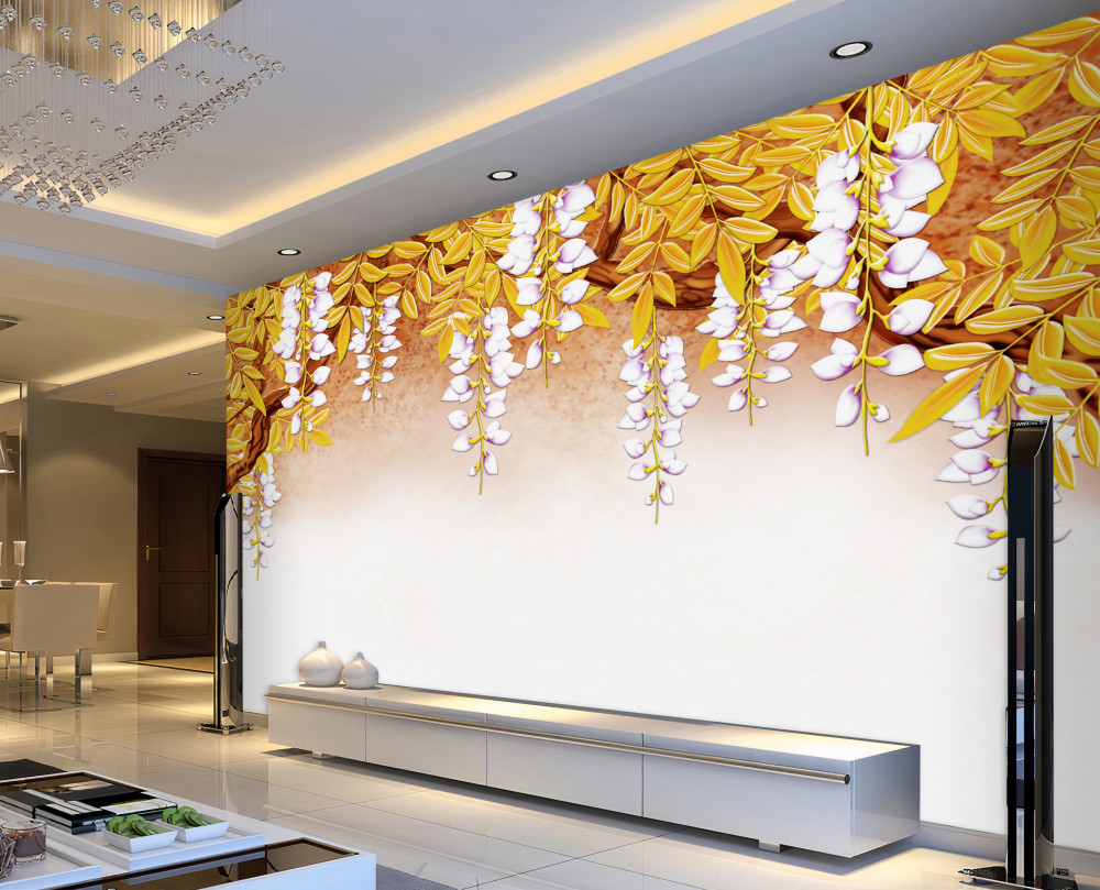 Tapeta Fototapeta białe kwiaty i żółte liście w odbiciu (artykuł a91572 ) z kategorii Fototapety 3D
