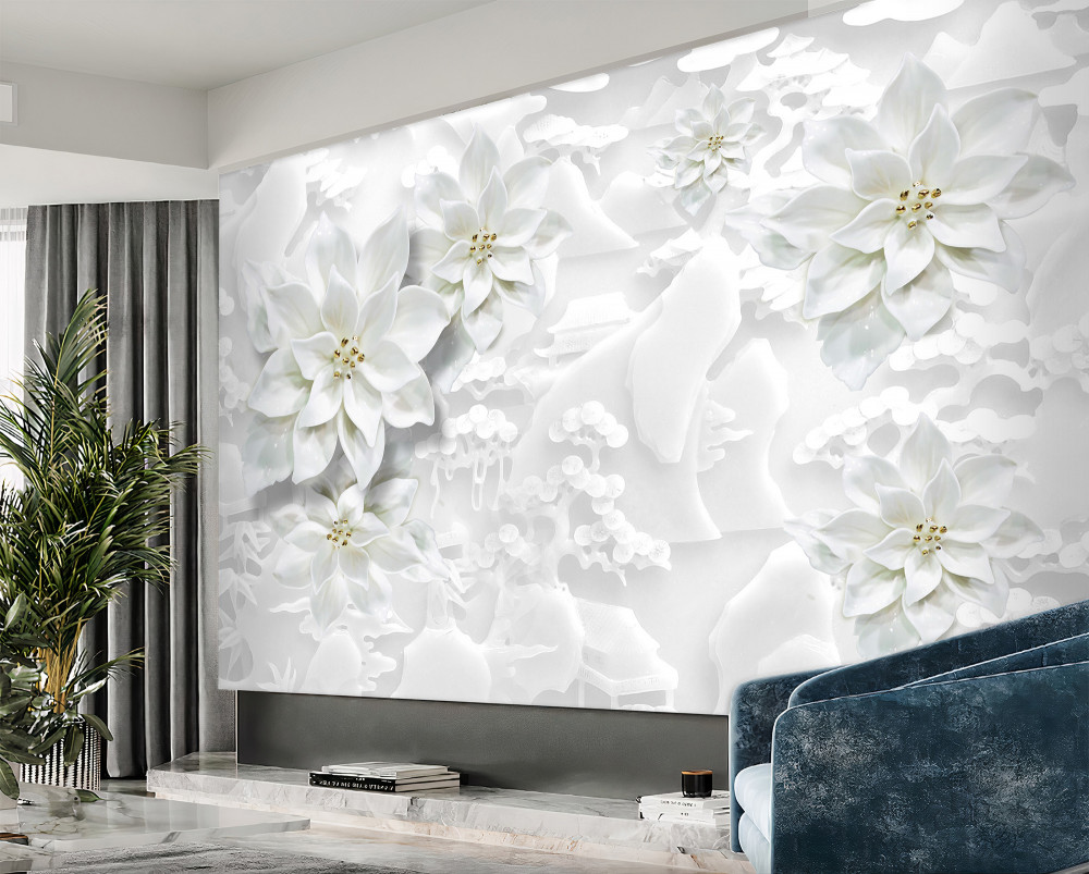 Tapeta Fototapeta białe kwiaty lotosu na białym tle (artykuł a94444 ) z kategorii Fototapety 3D