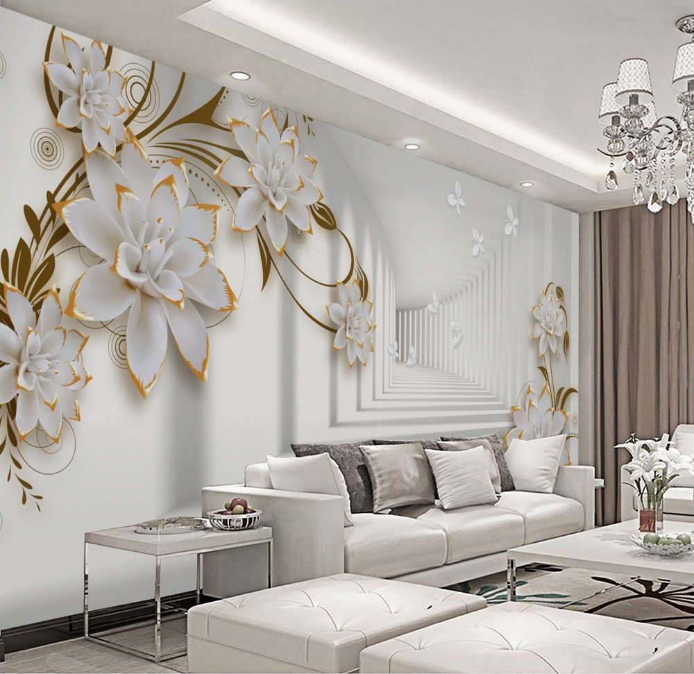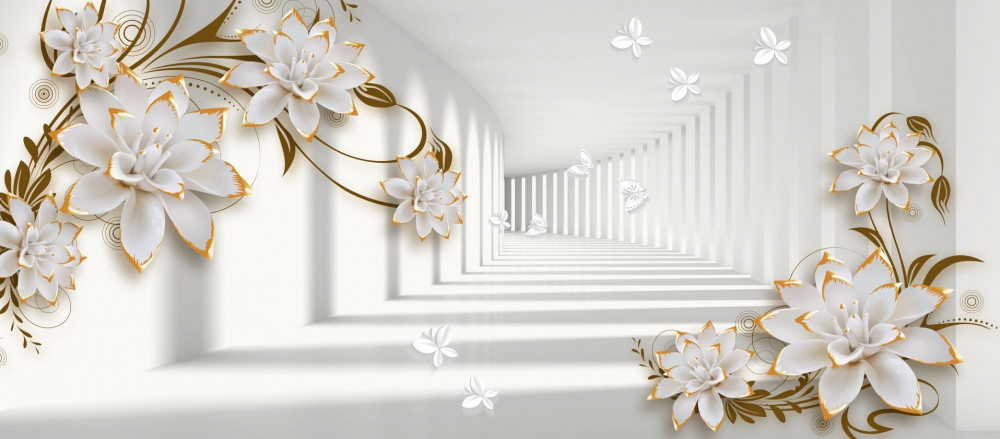 Tapeta Fototapeta białe kwiaty lotosu w kolorze złotym na abstrakcyjnym tle (artykuł a93527 ) z kategorii Fototapety 3D