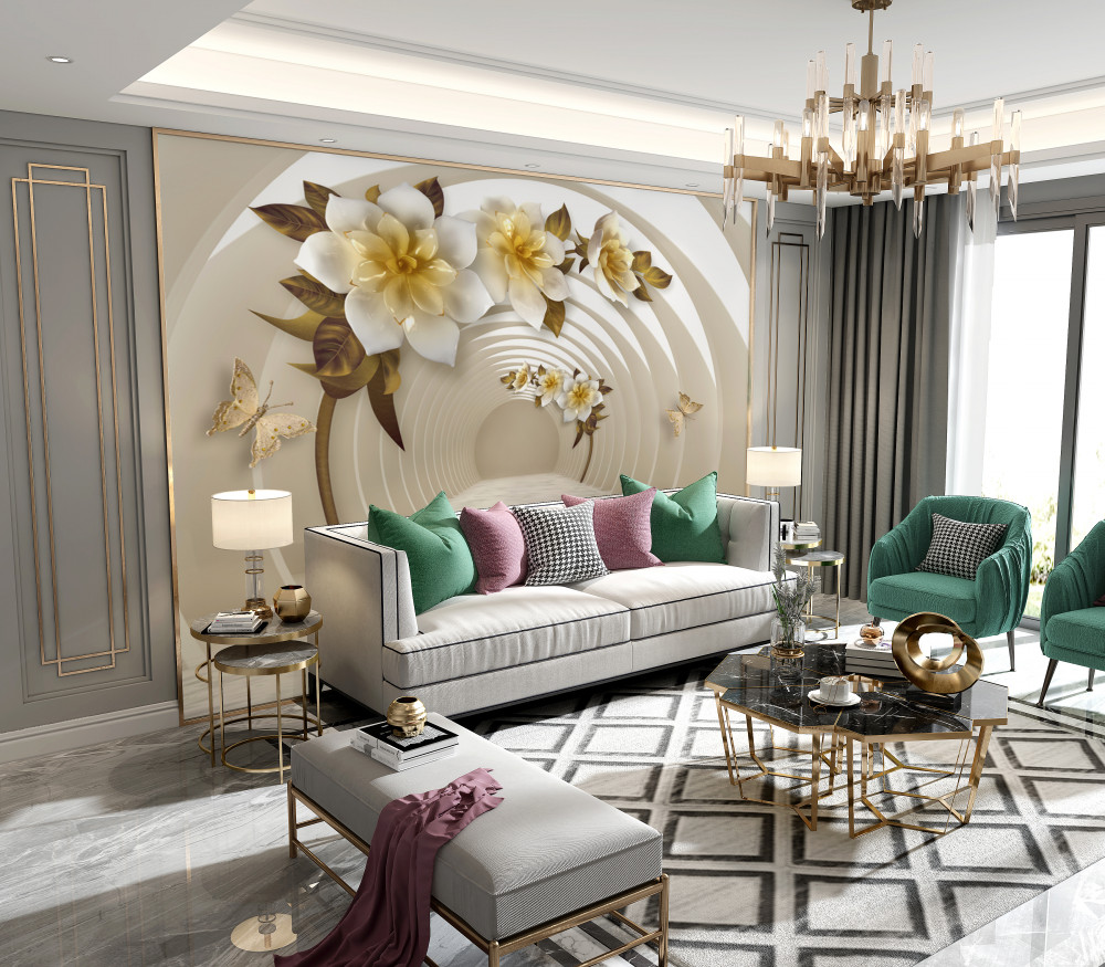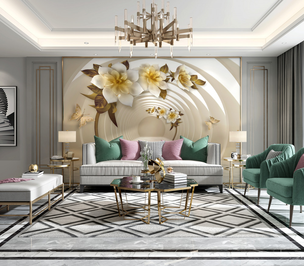 Tapeta Fototapeta białe kwiaty lotosu ze złotem w perspektywie (artykuł a91035 ) z kategorii Fototapety 3D