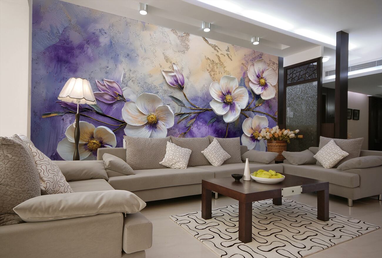 Tapeta Fototapeta Białe kwiaty na fioletowym tle (artykuł u14220 ) z kategorii Fototapety 3D