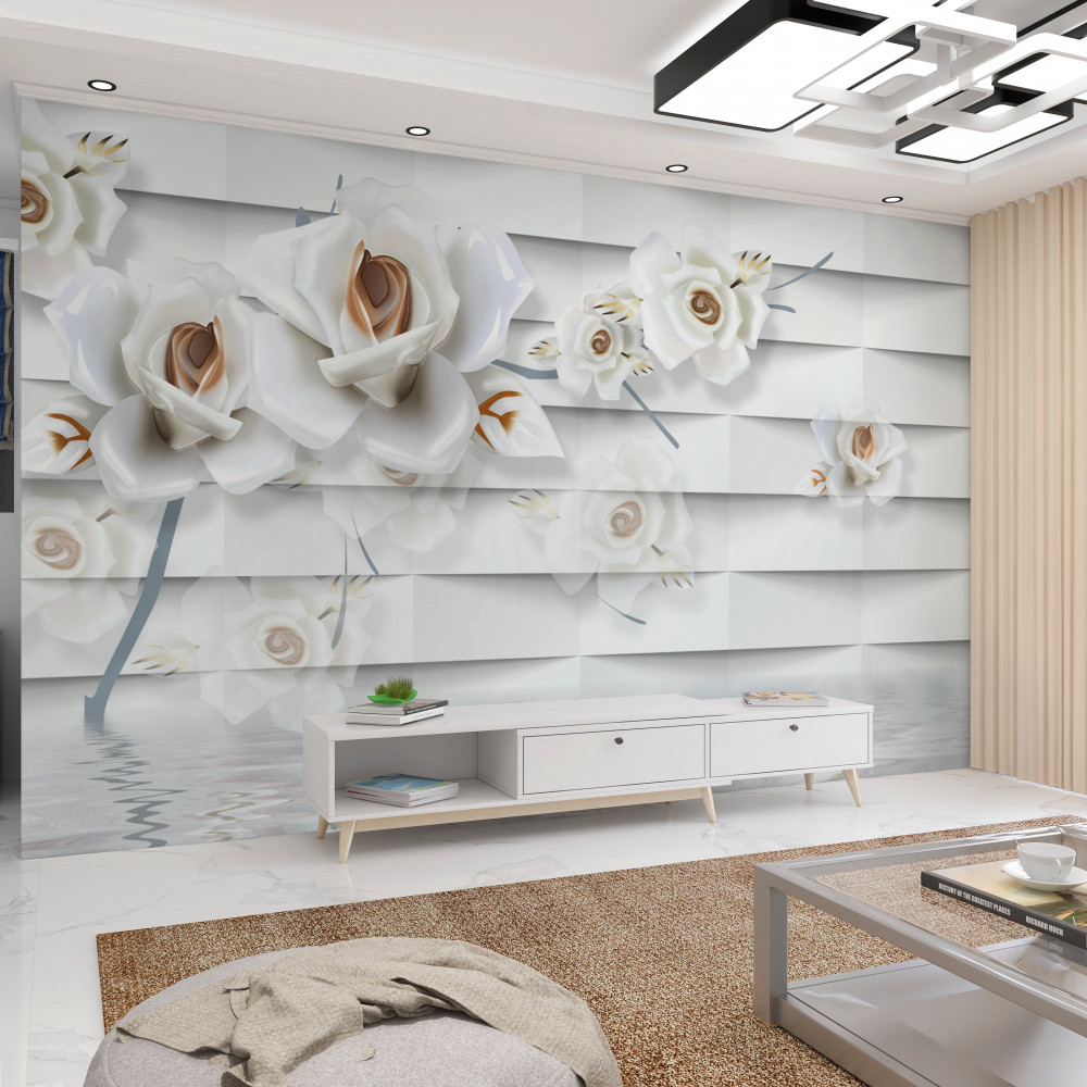 Tapeta Fototapeta białe kwiaty w spokojnej wodzie (artykuł pb5587 ) z kategorii Fototapety 3D