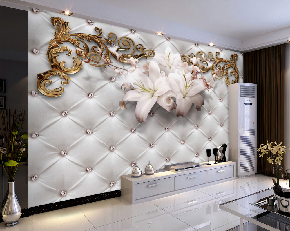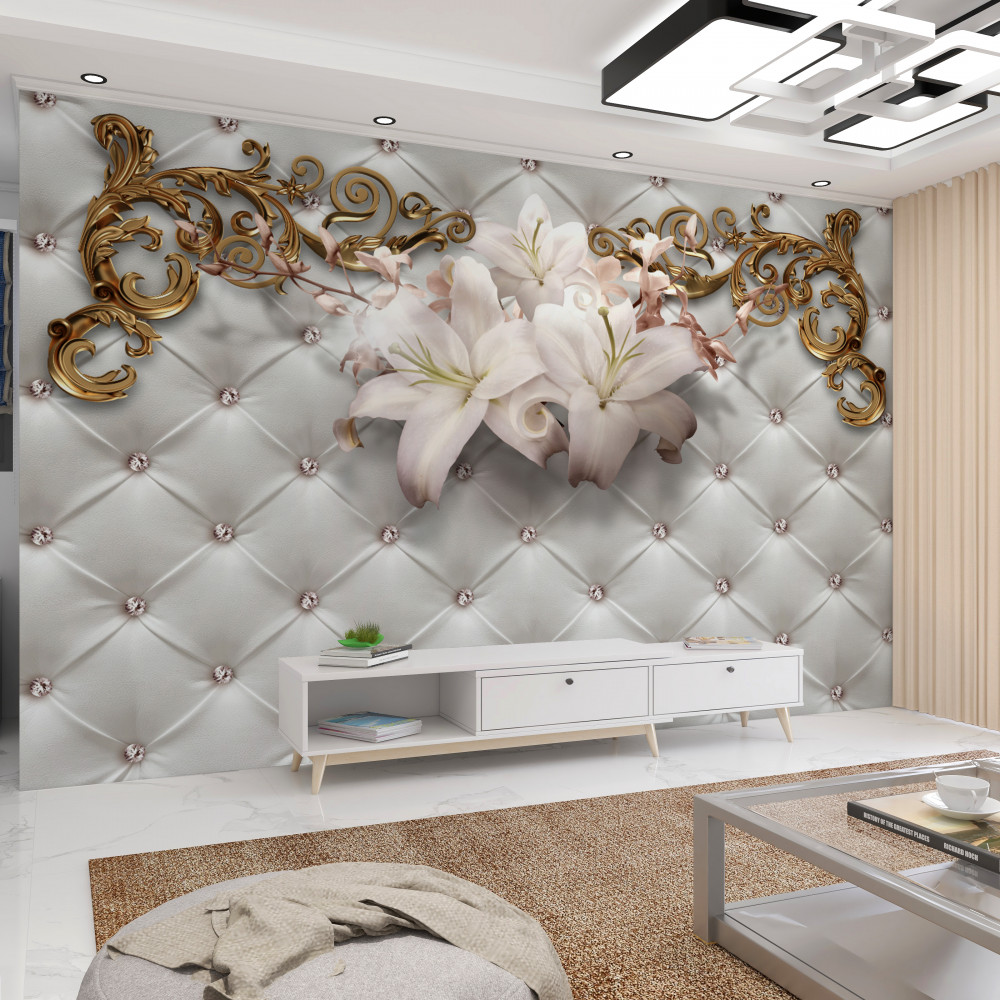 Tapeta Fototapeta białe kwiaty z dżetów i złota (artykuł a91206 ) z kategorii Fototapety 3D