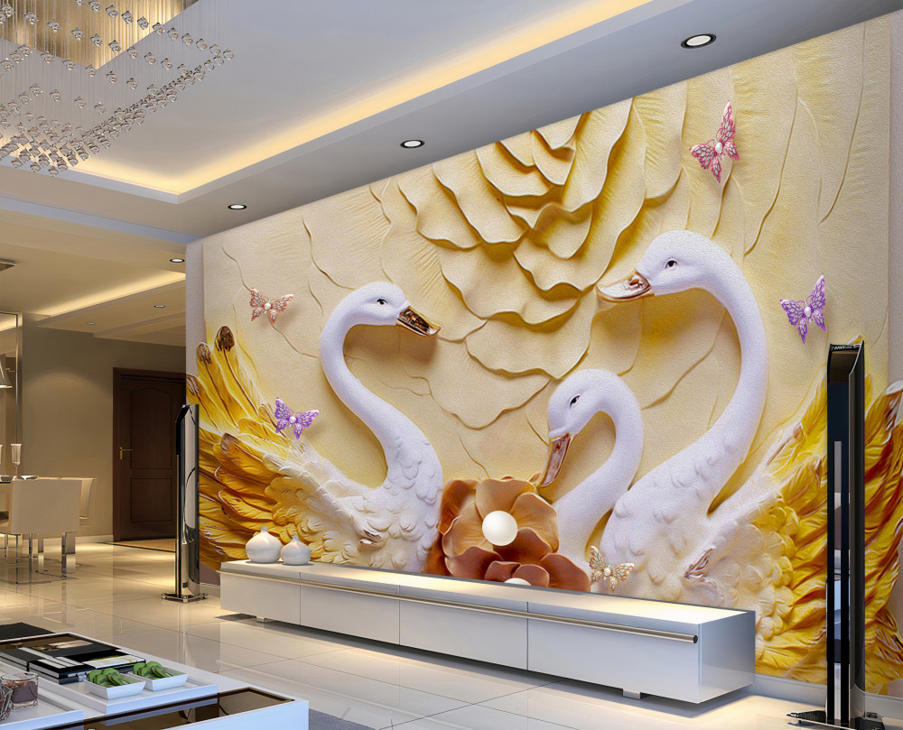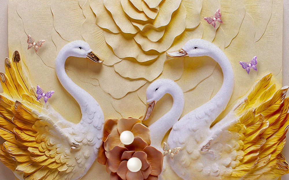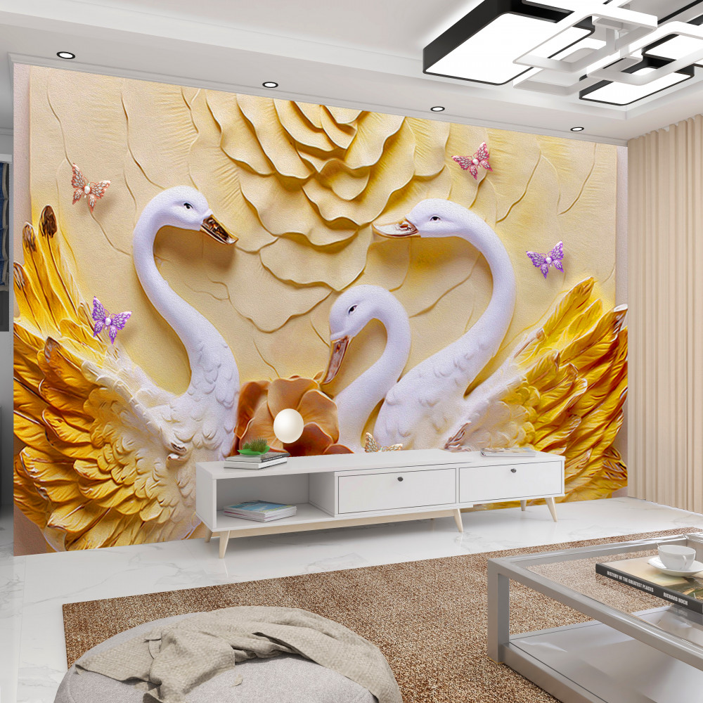 Tapeta Fototapeta białe łabędzie ze złotymi skrzydłami (artykuł pb8891 ) z kategorii Fototapety 3D