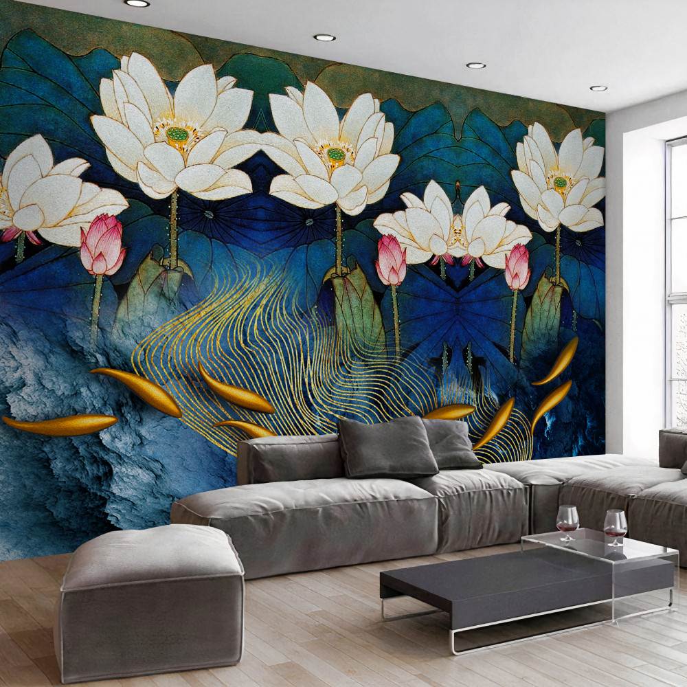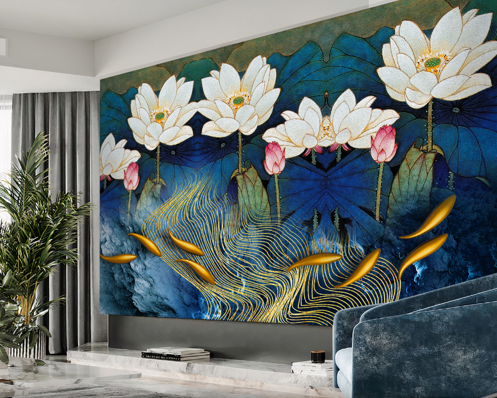Tapeta Fototapeta białe lotosy w błękitnej wodzie (artykuł pb7781 ) z kategorii Fototapety 3D