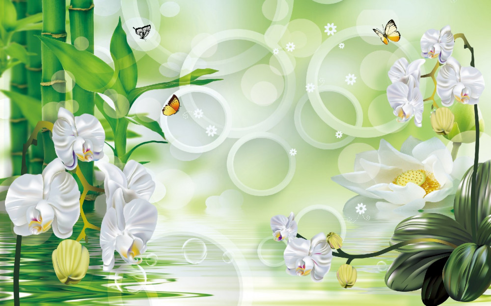 Tapeta Fototapeta białe orchidee i bambus w wodzie (artykuł a89966 ) z kategorii Fototapety 3D