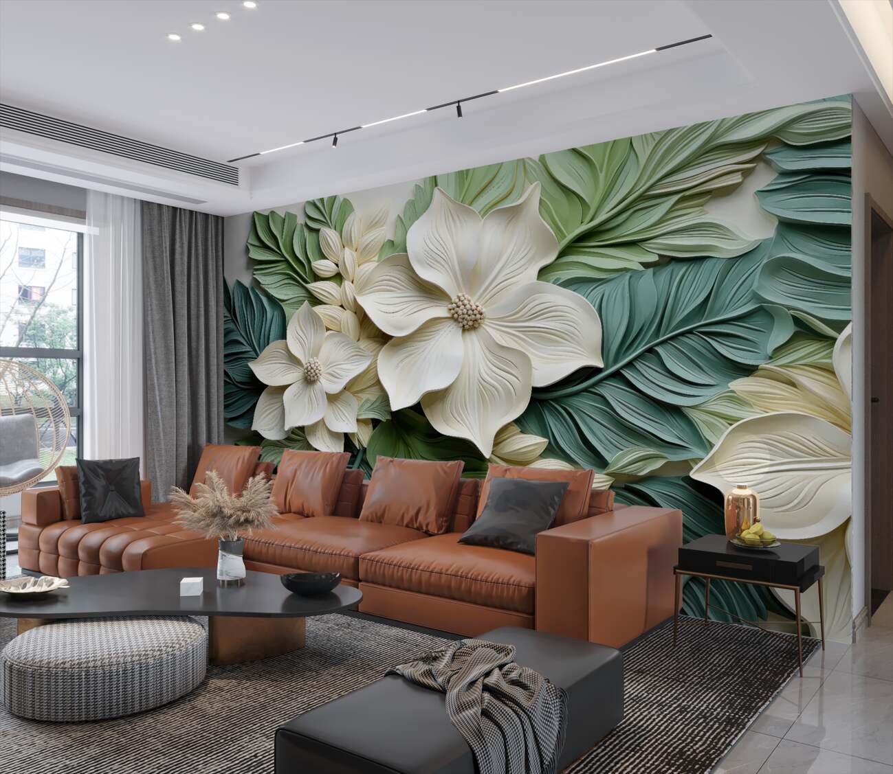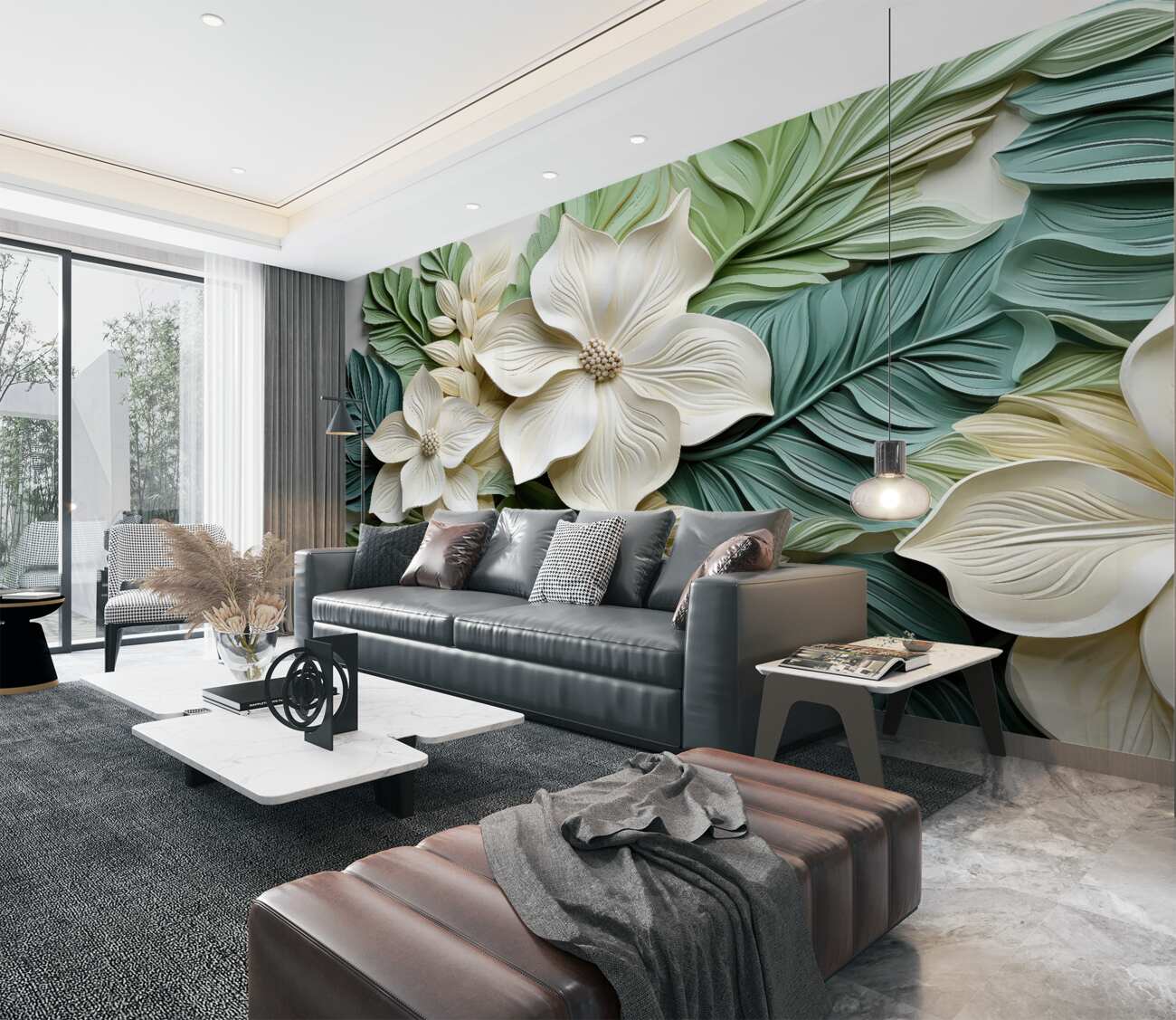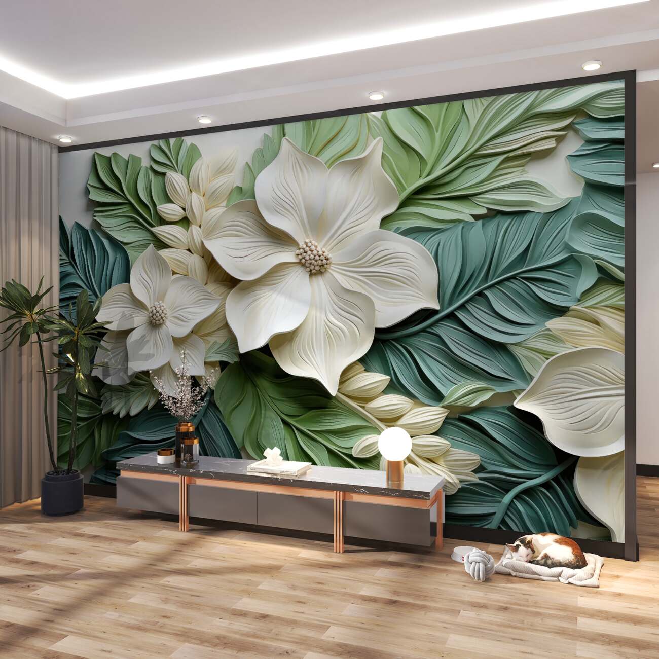 Tapeta Fototapeta Białe pąki kwiatów na zielono (artykuł a99544 ) z kategorii Fototapety 3D