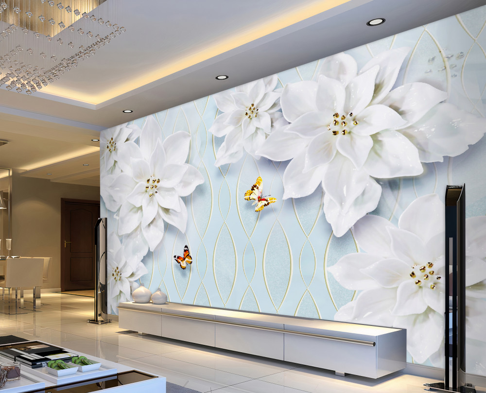 Tapeta Fototapeta białe pąki kwiatowe i motyle (artykuł pb10027 ) z kategorii Fototapety 3D