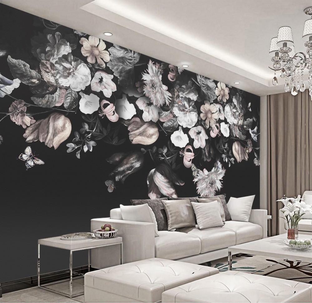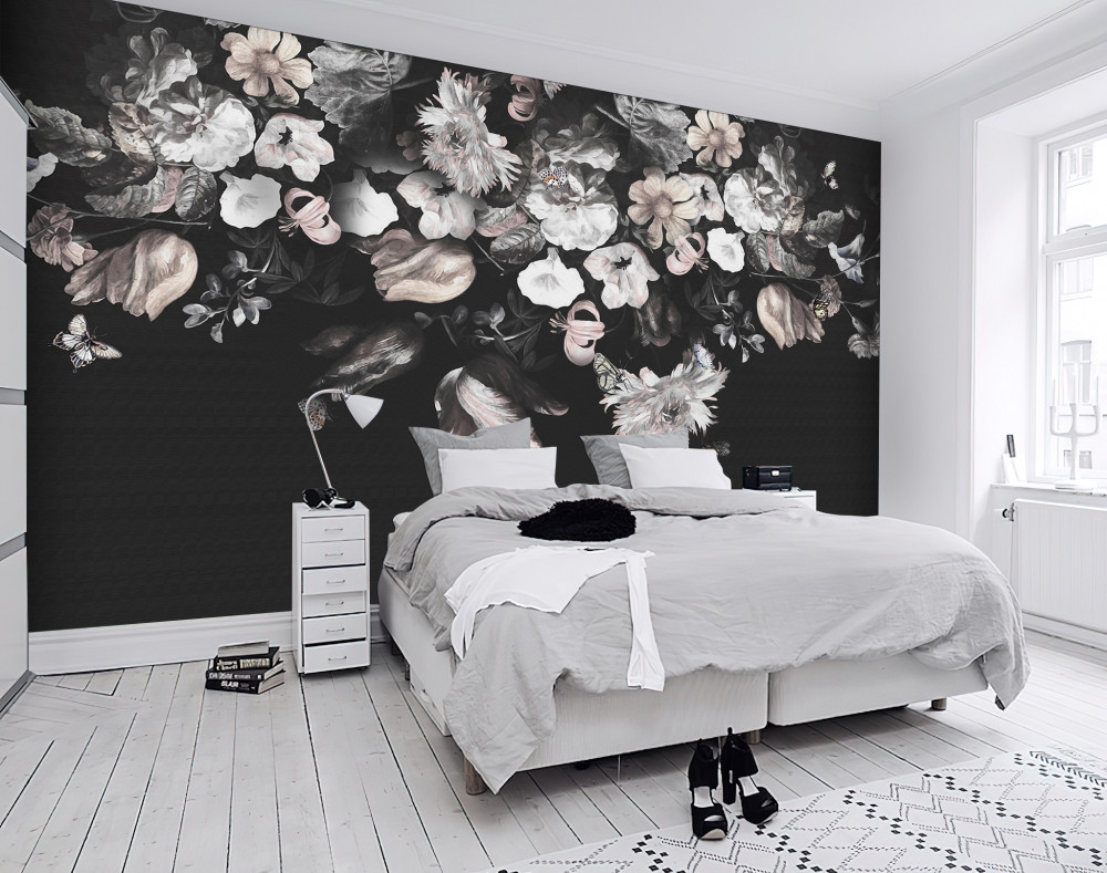 Tapeta Fototapeta białe pąki kwiatowe na czarnym tle (artykuł a94157 ) z kategorii Fototapety 3D