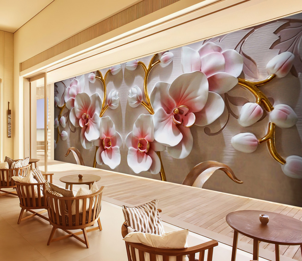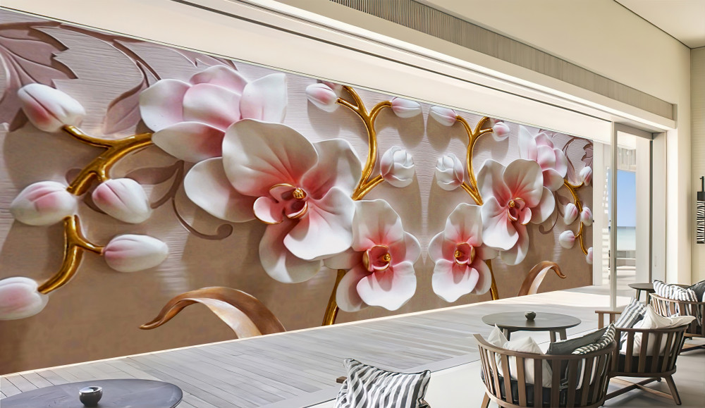 Tapeta Fototapeta białe pąki orchidei w odbiciu (artykuł a91027 ) z kategorii Fototapety 3D