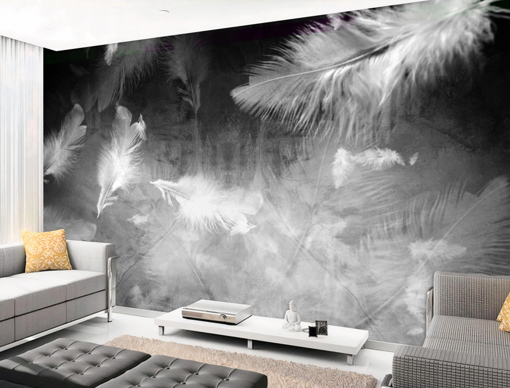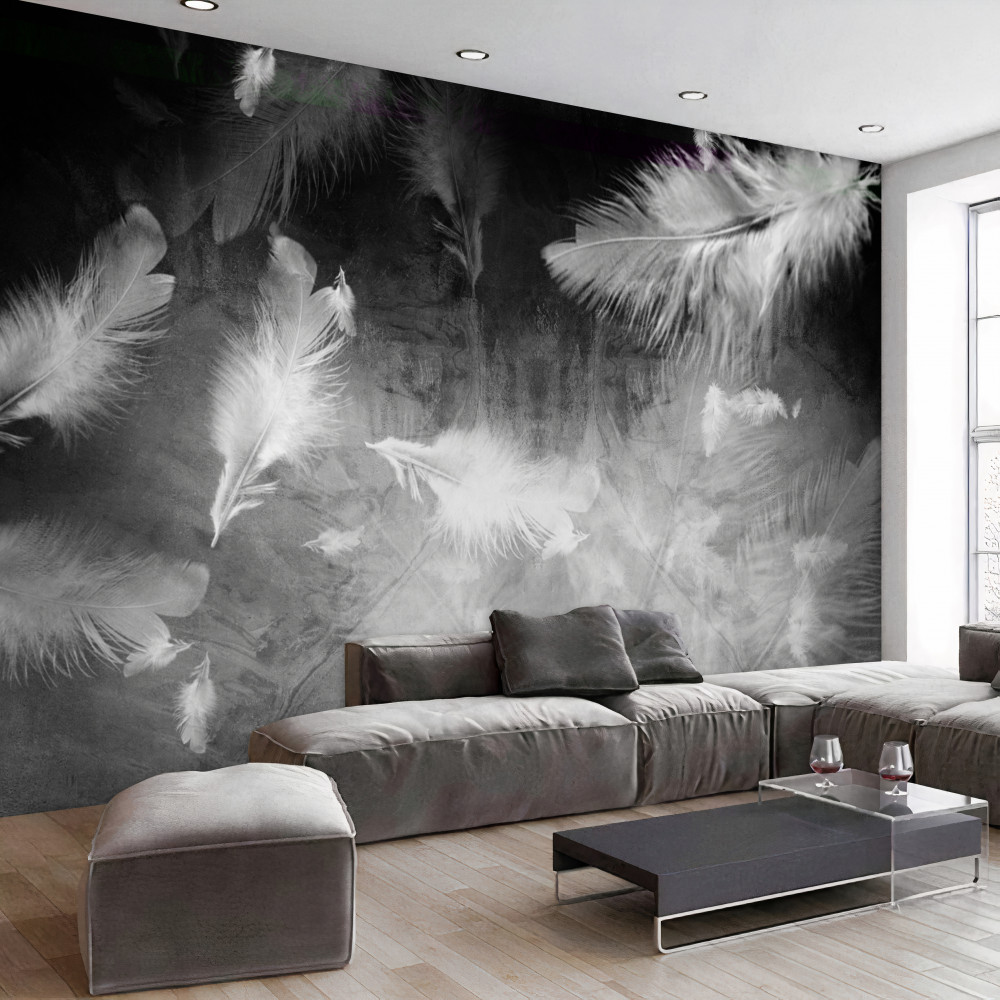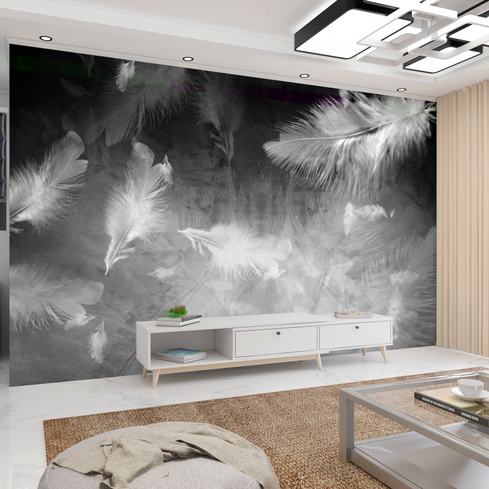 Tapeta Fototapeta białe pióra na szarym tle (artykuł a92000 ) z kategorii Fototapety 3D