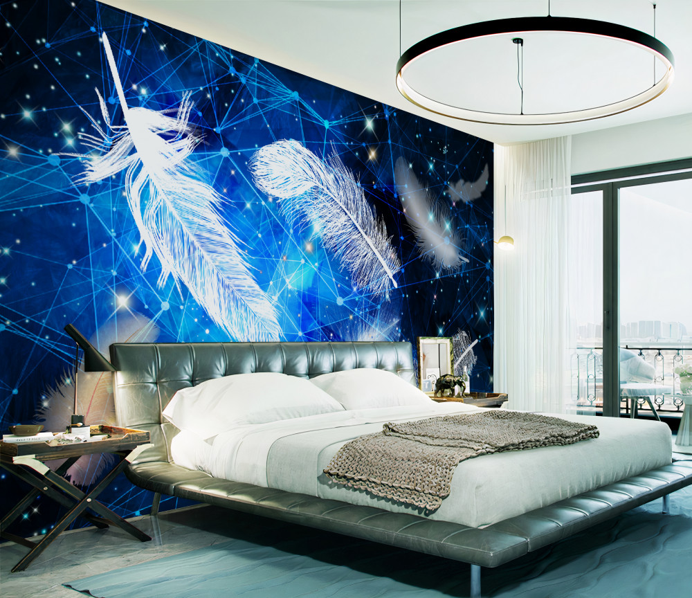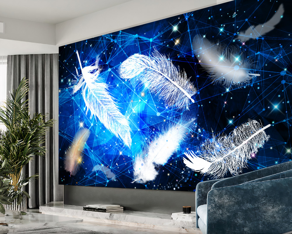 Tapeta Fototapeta białe pióra na tle rozgwieżdżonego nieba (artykuł pb8938 ) z kategorii Fototapety 3D