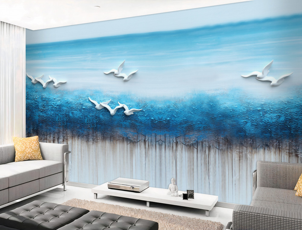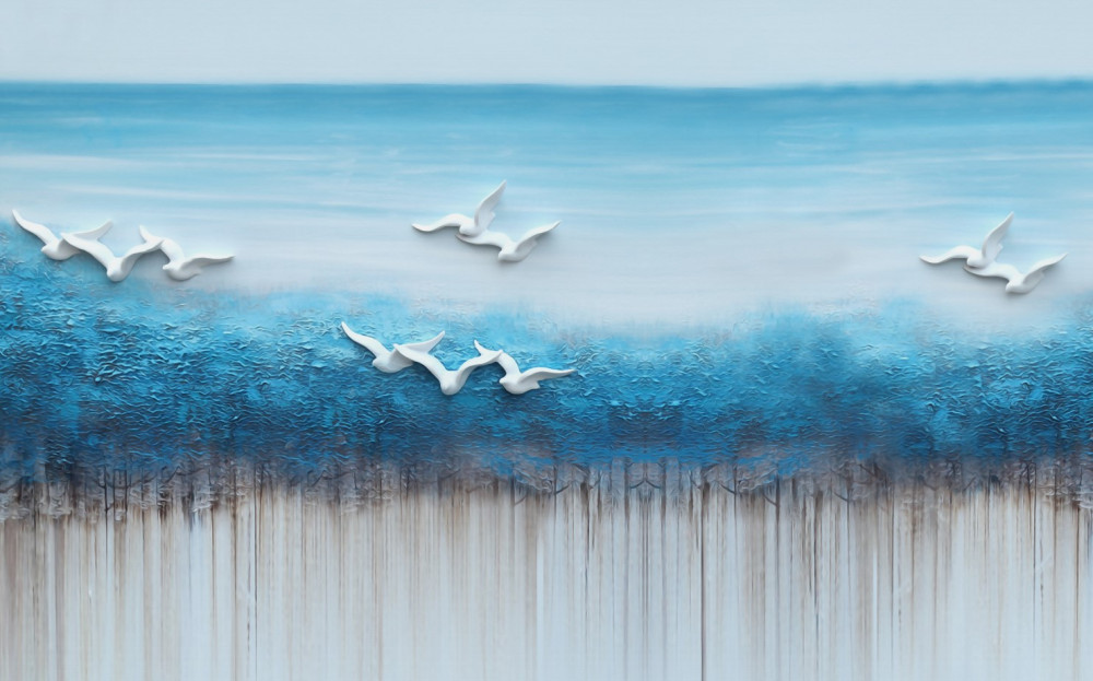 Tapeta Fototapeta białe ptaki nad błękitnymi chmurami (artykuł a92534 ) z kategorii Fototapety 3D