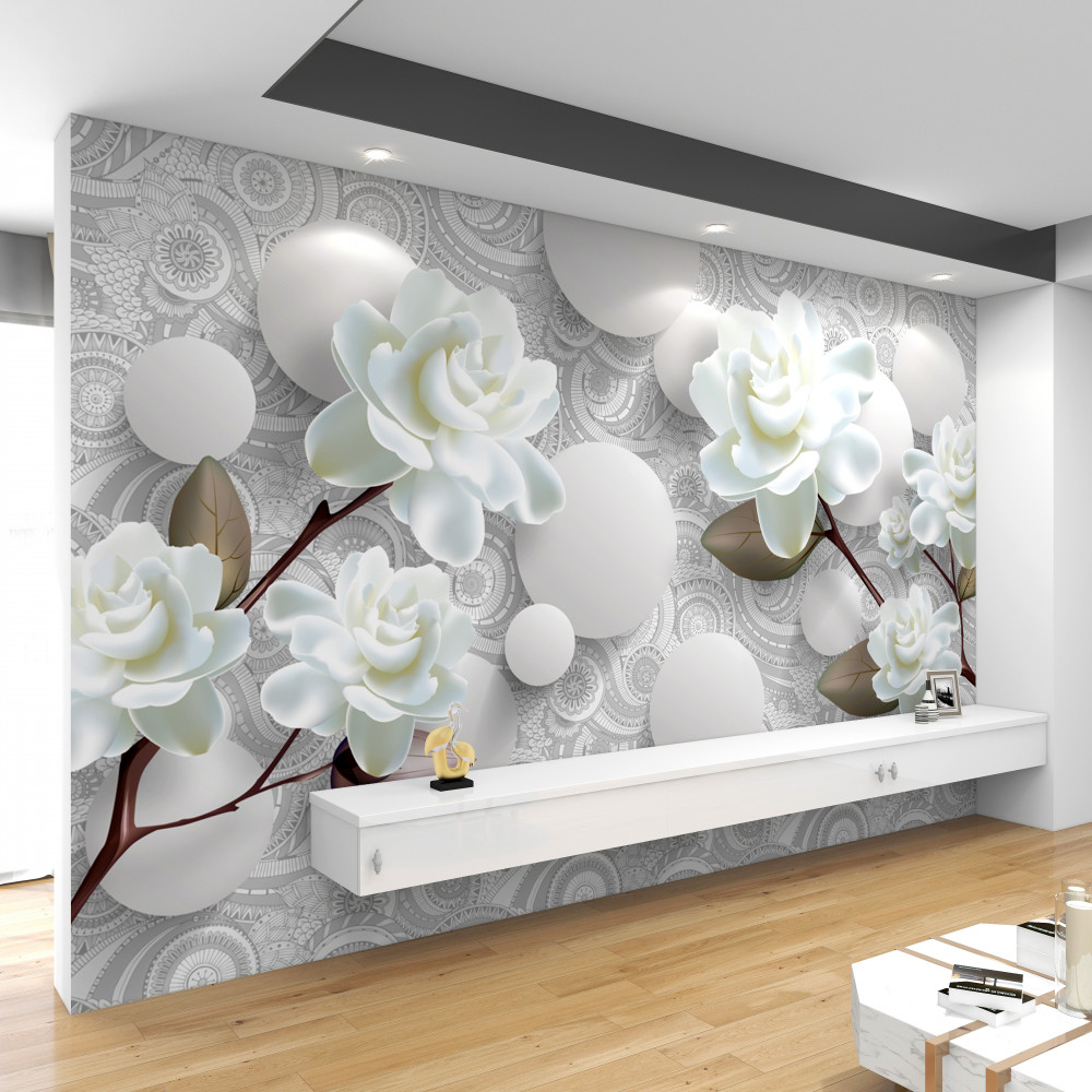 Tapeta Fototapeta białe róże i koła (artykuł a93779 ) z kategorii Fototapety 3D