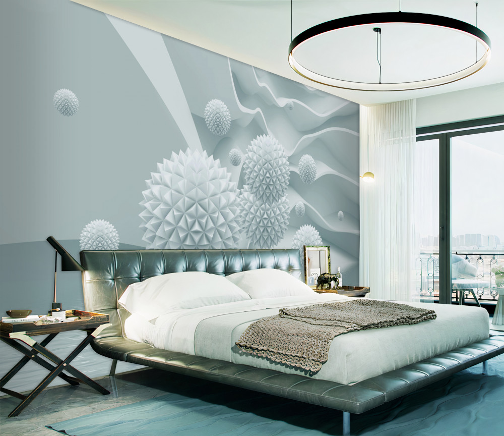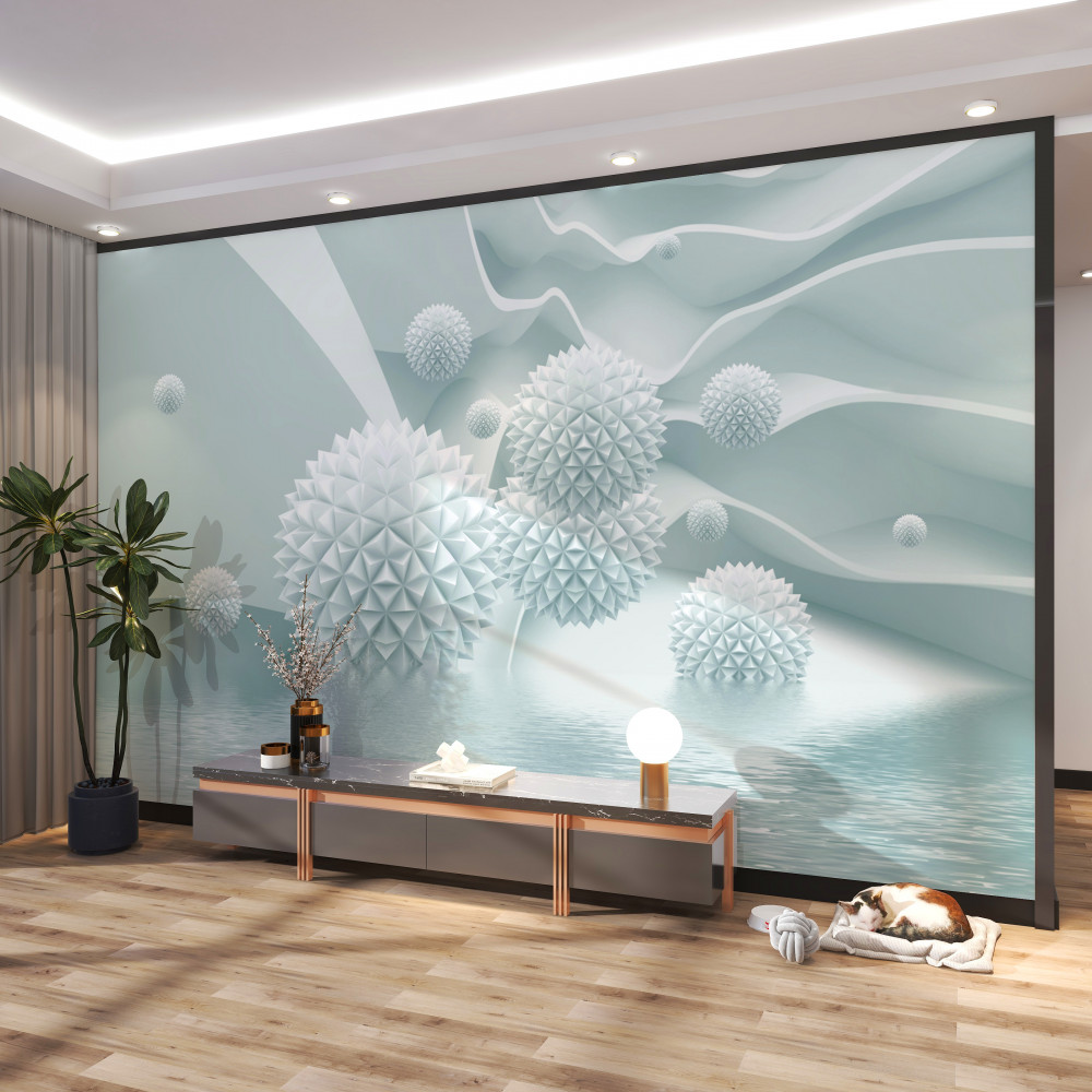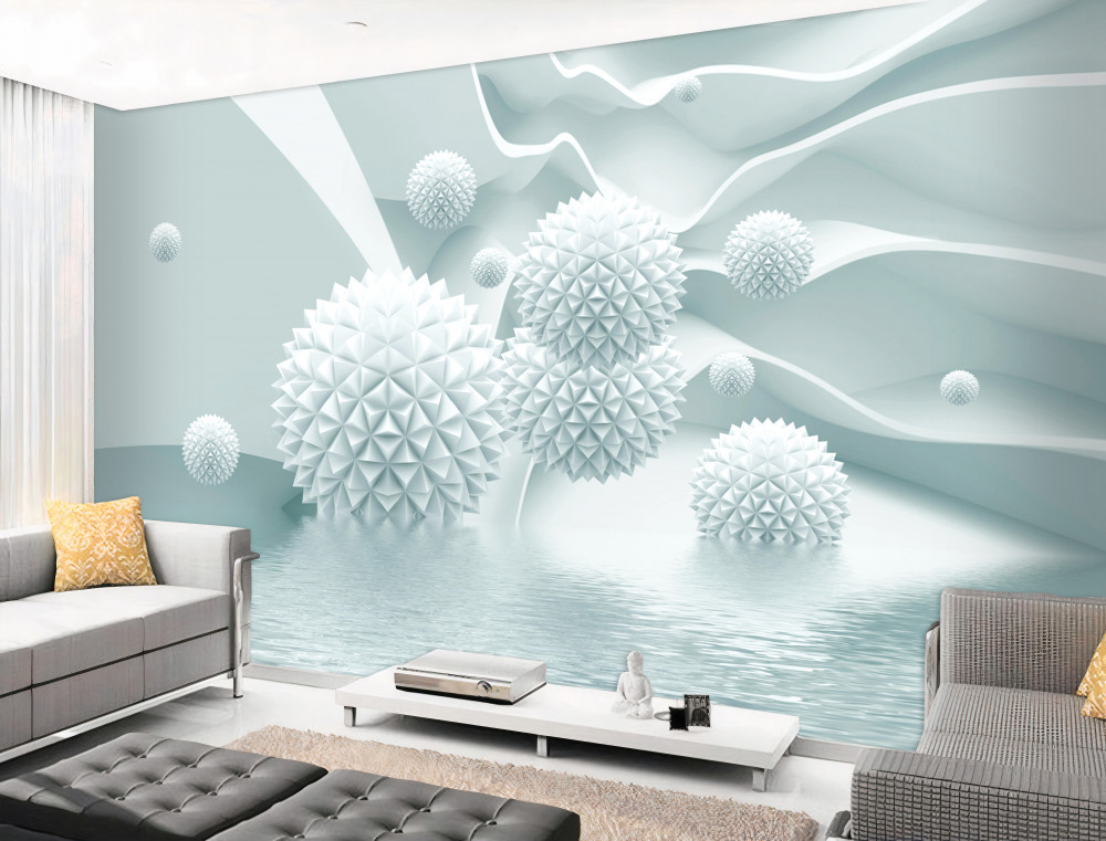 Tapeta Fototapeta białe spiczaste kule w zerowej grawitacji (artykuł a94282 ) z kategorii Fototapety 3D