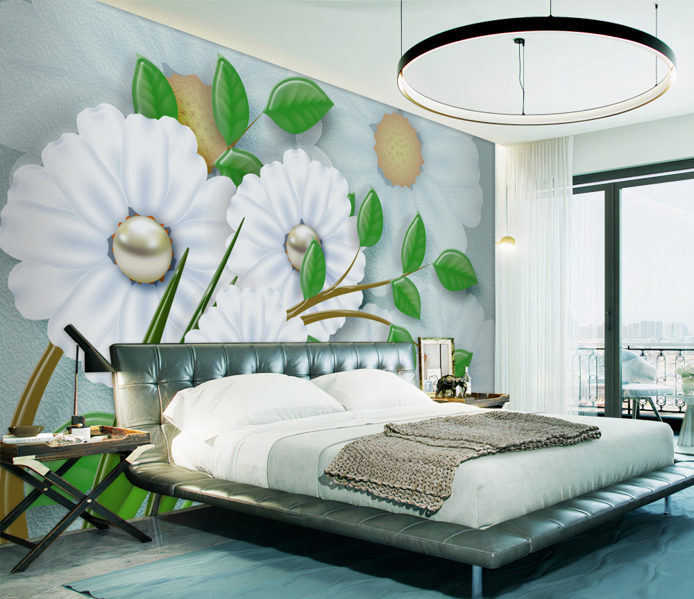 Tapeta Fototapeta białe stokrotki z perłą w sercu (artykuł pb3338 ) z kategorii Fototapety 3D