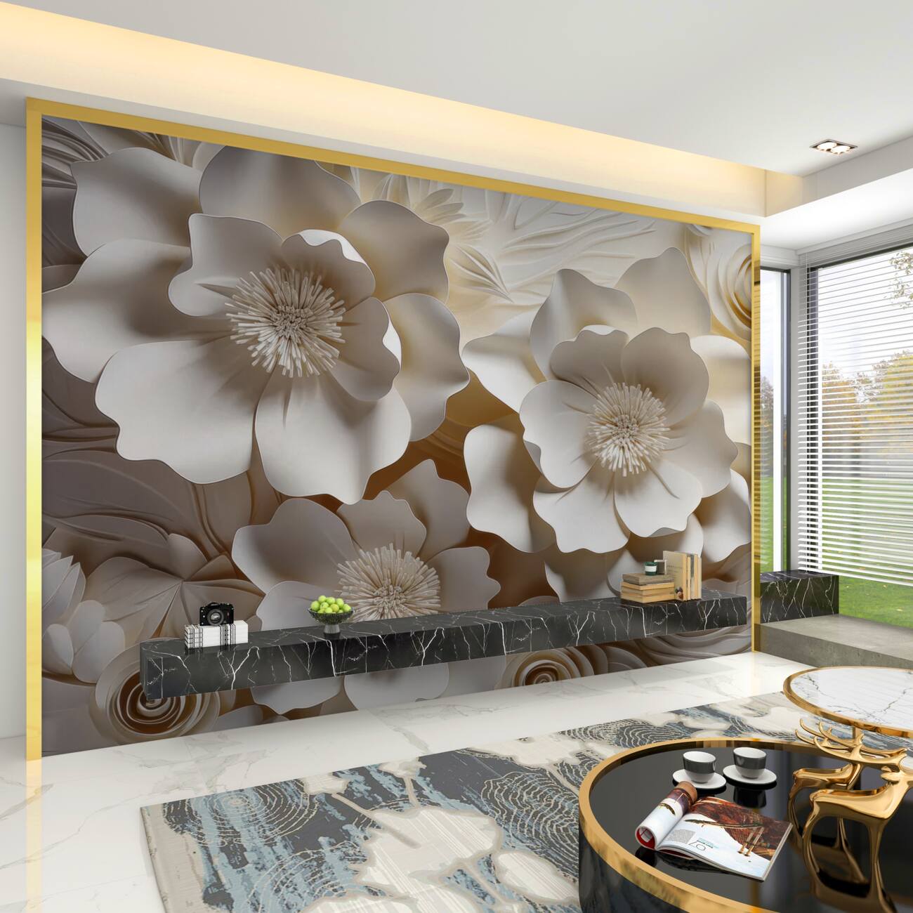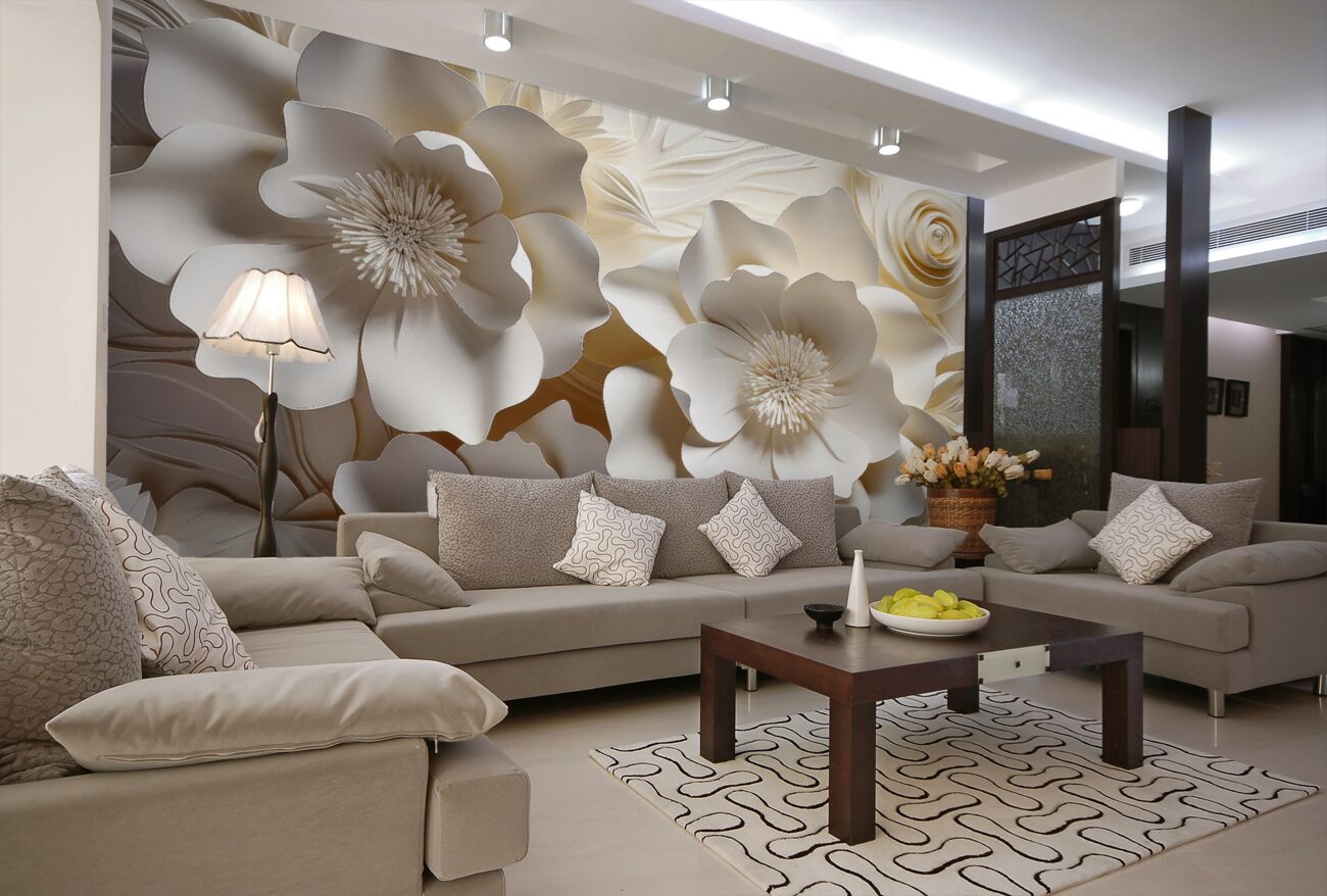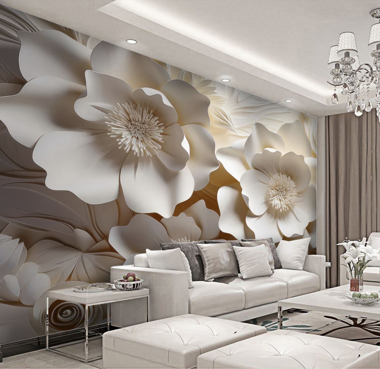 Tapeta Fototapeta Białe tekstury kwiaty 3D (artykuł a99546 ) z kategorii Fototapety 3D