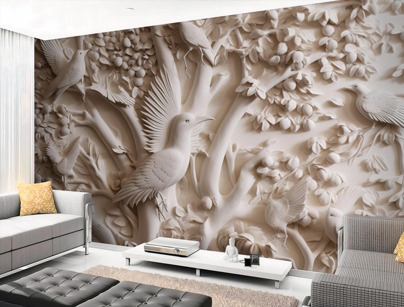 Tapeta Fototapeta Białe tekstury wykonane z drewna i ptaków (artykuł a99160 ) z kategorii Fototapety 3D