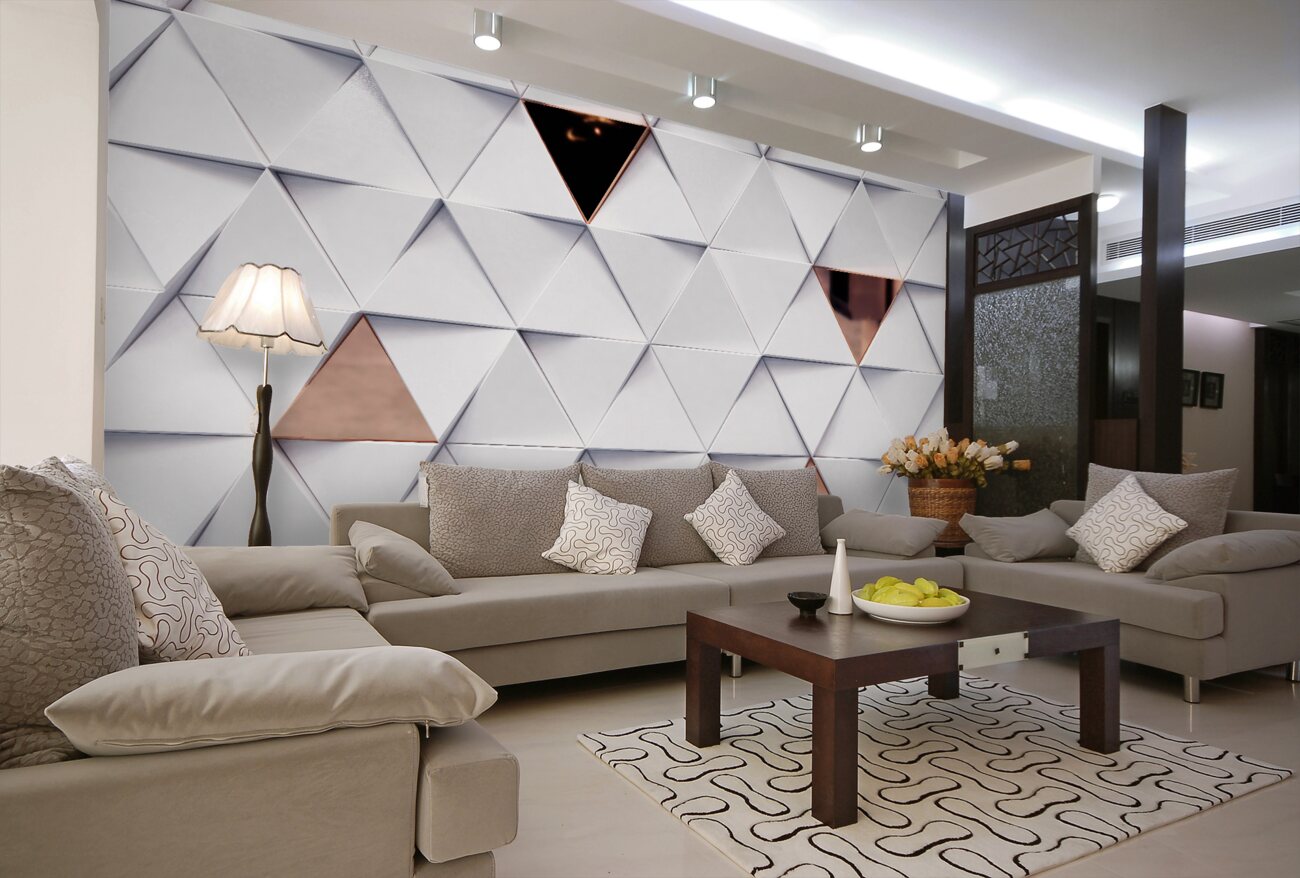 Tapeta Fototapeta Białe trójkąty z różem (artykuł u10132 ) z kategorii Fototapety 3D