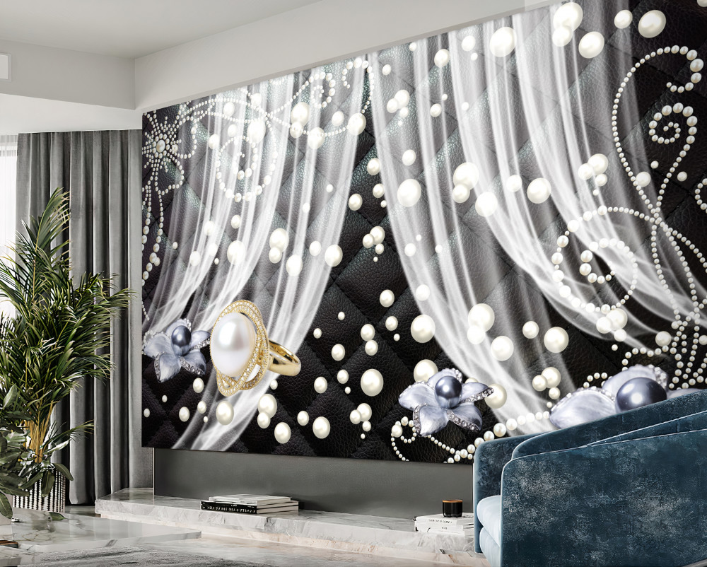 Tapeta Fototapeta białe zasłony i złote dekoracje (artykuł a91088 ) z kategorii Fototapety 3D
