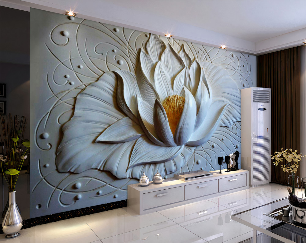 Tapeta Fototapeta biały lotos w płaskorzeźbie (artykuł a91160 ) z kategorii Fototapety 3D