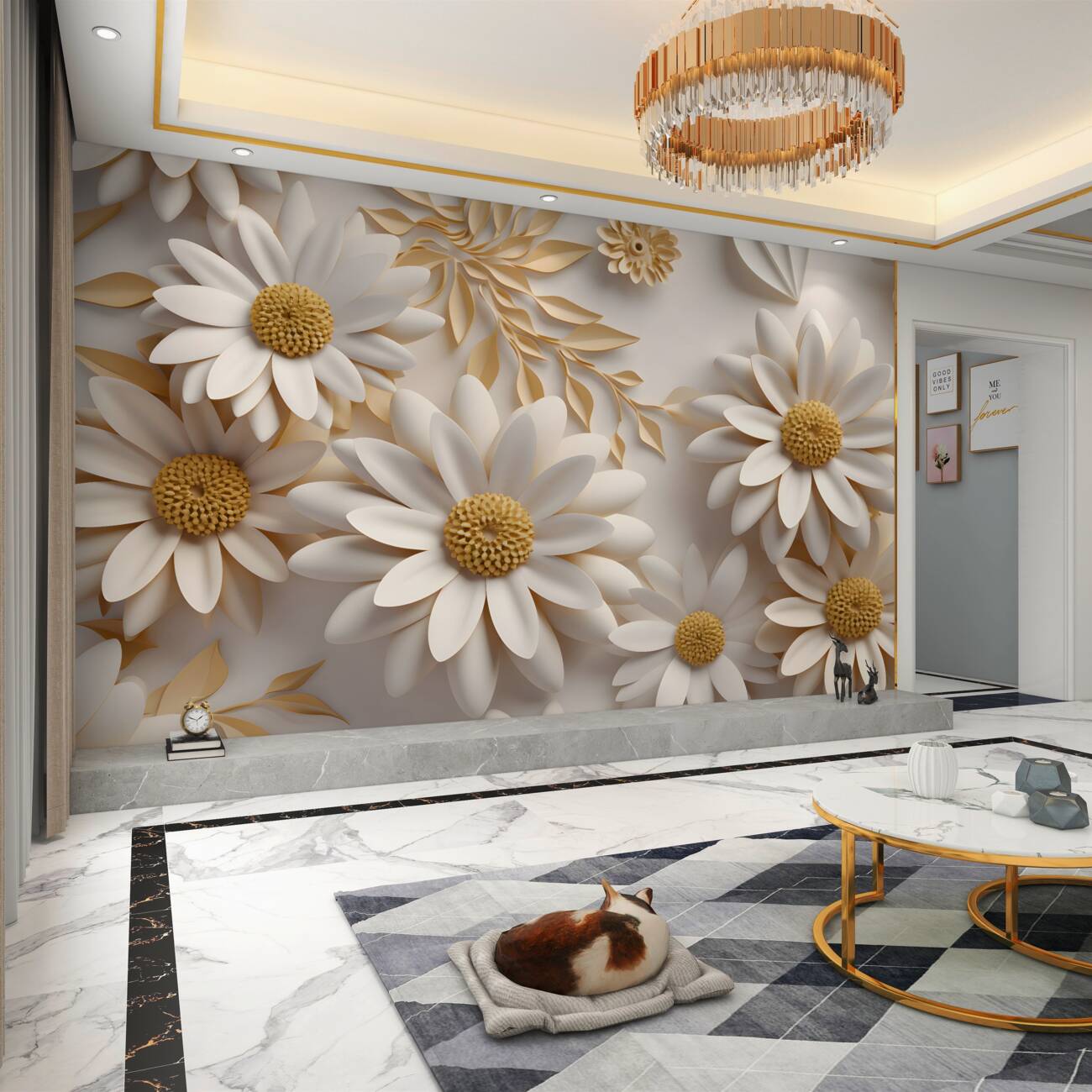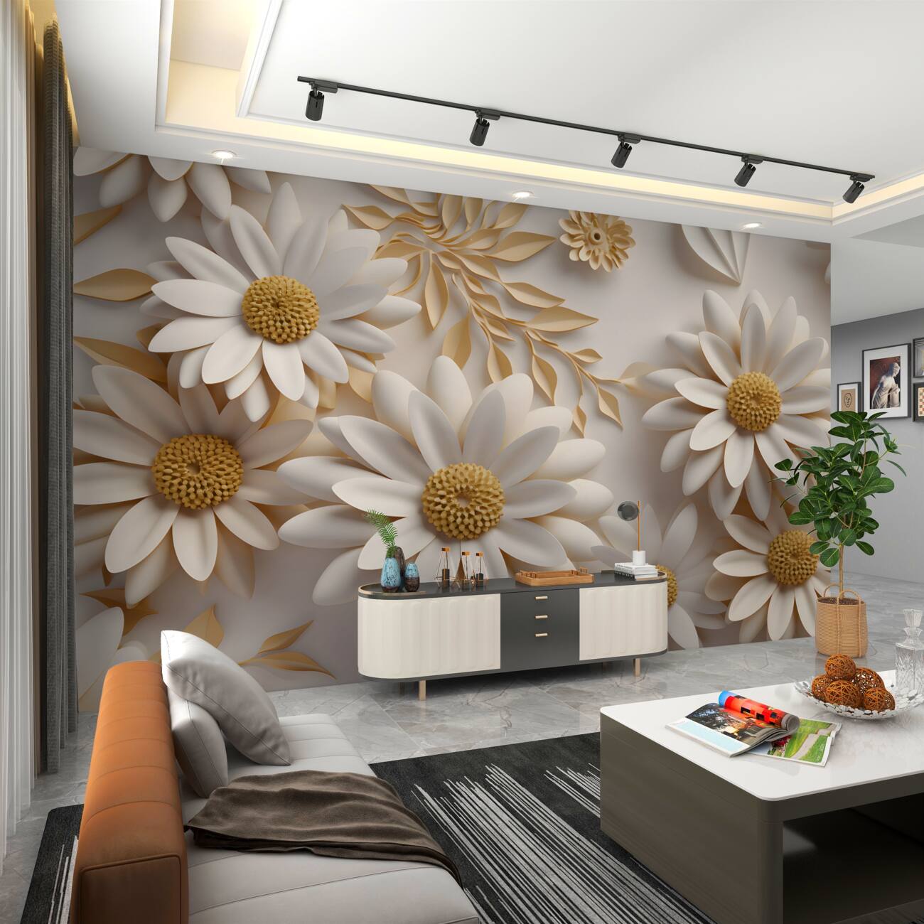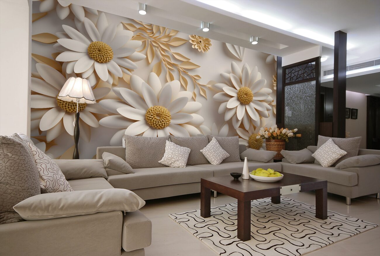 Tapeta Fototapeta Biały rumianek 3D obszerny (artykuł u10090 ) z kategorii Fototapety 3D