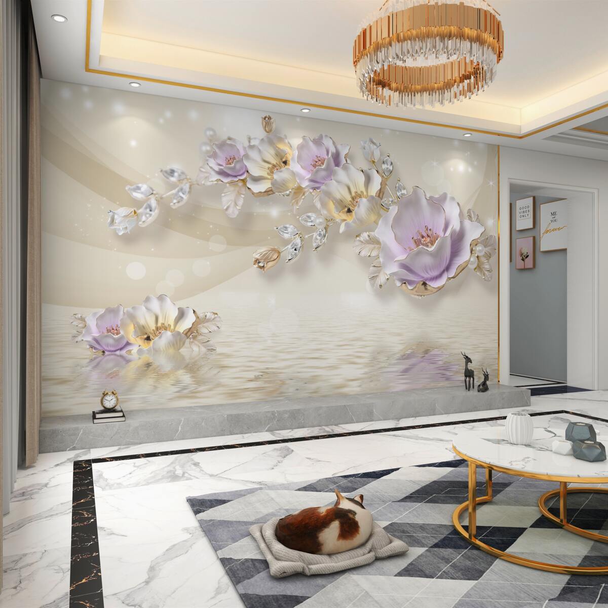 Tapeta Fototapeta Biżuteria złota i kwiatowa (artykuł a98819 ) z kategorii Fototapety 3D