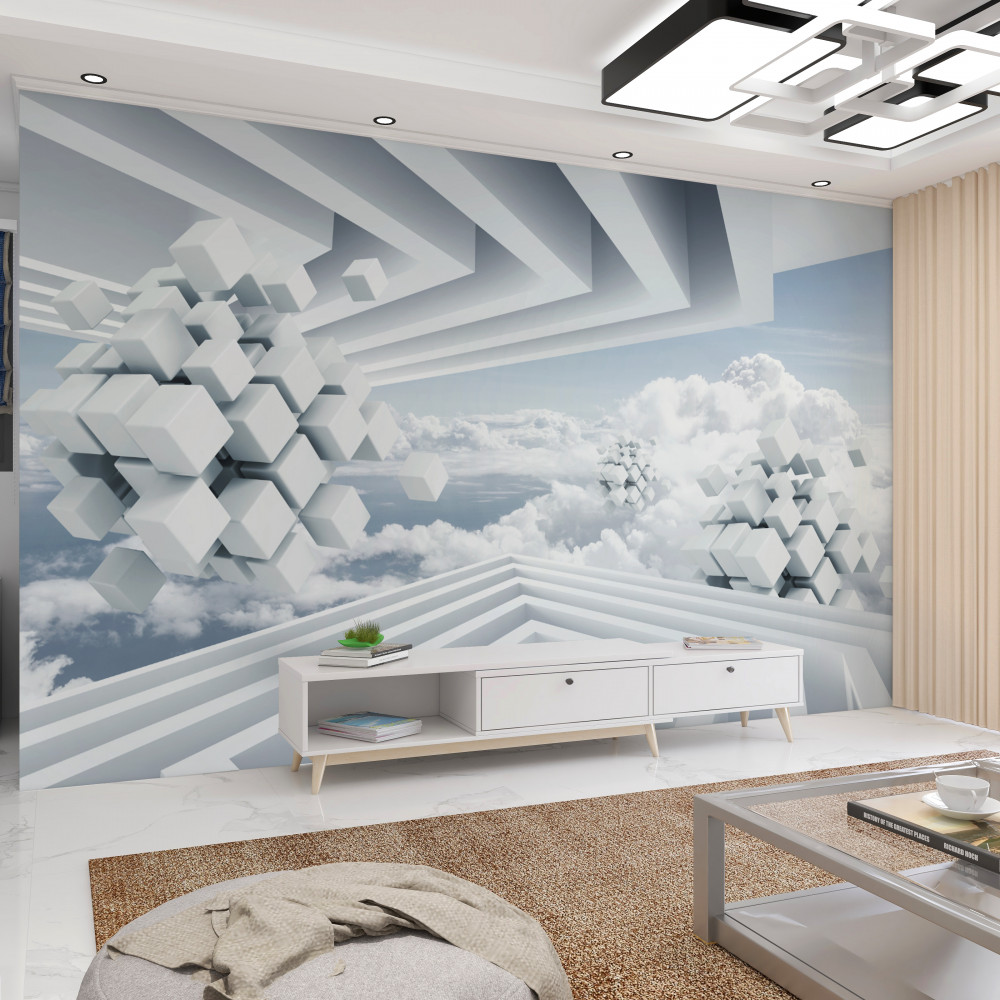 Tapeta Fototapeta błękitne niebo i białe chmury w reprezentacji geometrycznej (artykuł a91154 ) z kategorii Fototapety 3D