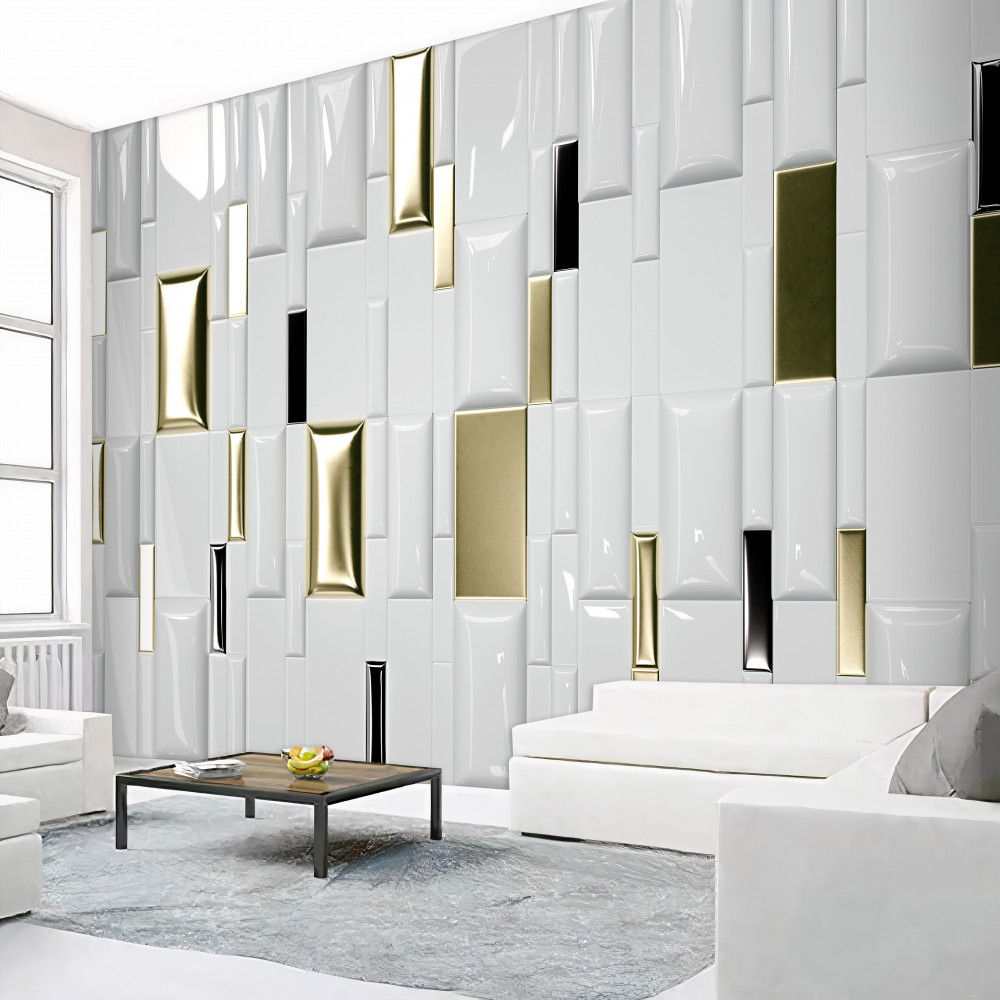 Tapeta Fototapeta błyszczące płytki ze złotymi akcentami (artykuł a93652 ) z kategorii Fototapety 3D