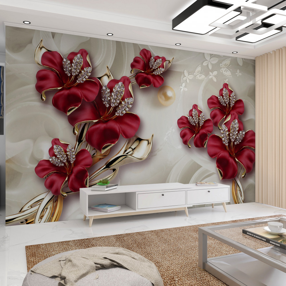 Tapeta Fototapeta bordowe linie i złote perły (artykuł a90932 ) z kategorii Fototapety 3D